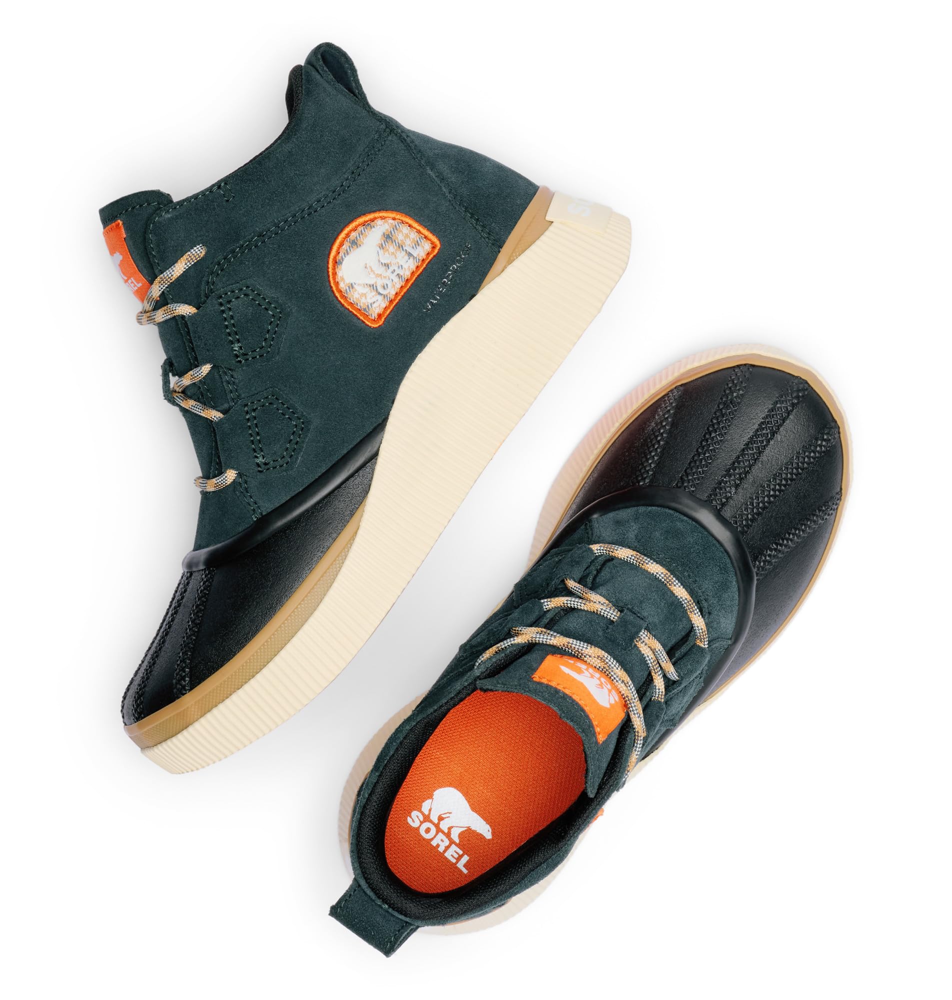 Molded PU STEADYSOLE, Available in waterproof leather (CW 243, 264, 355), suede (494), suede with a felt collar (292), felt with a leather collar (011, 244) or houndstooth textile with a leather collar (253) .Vulcanized rubber shell. Heel pull tab. Textile lining. Waterproof bootie construction. Laces are not waterproof
