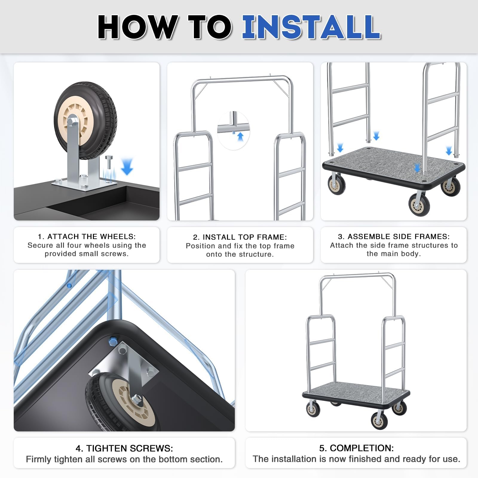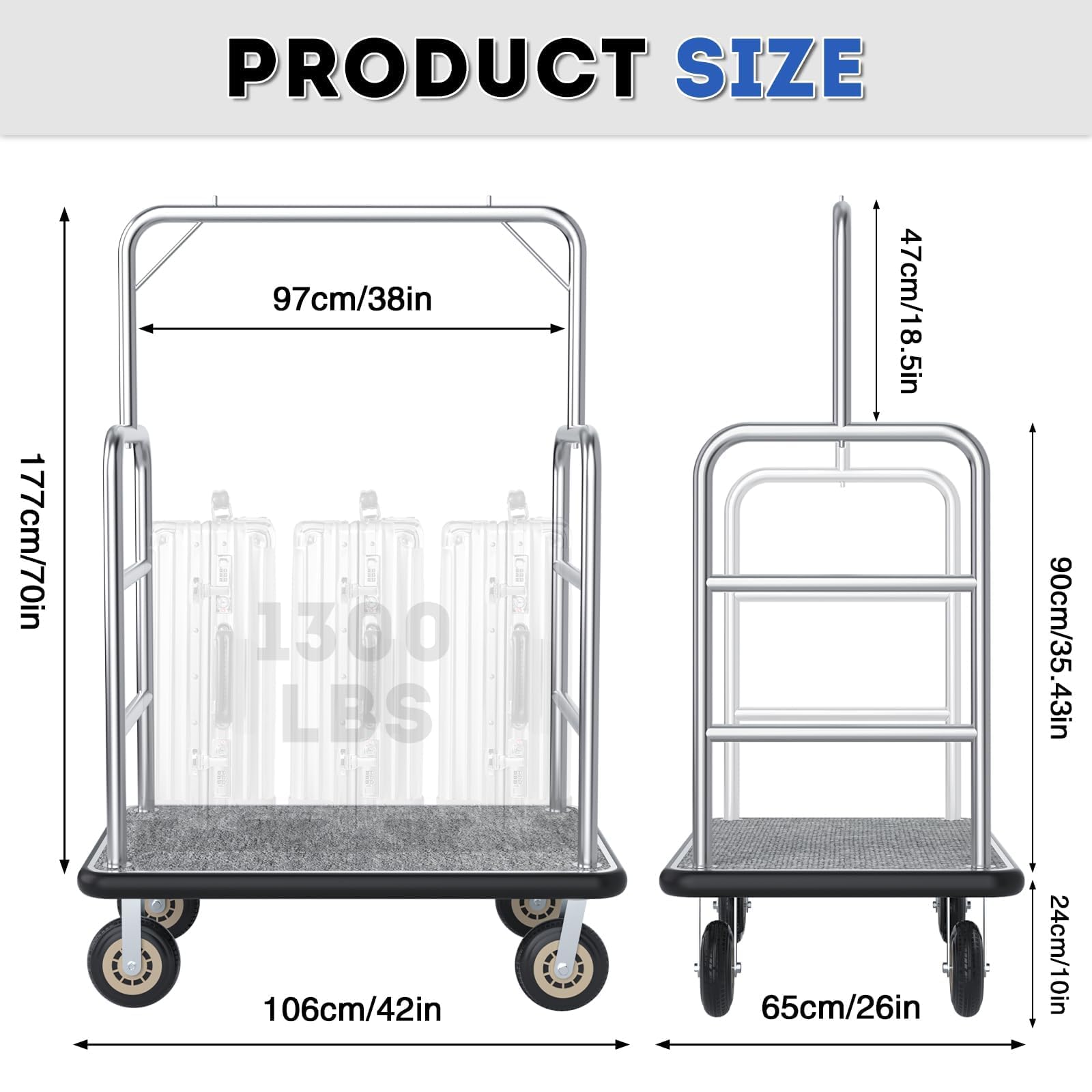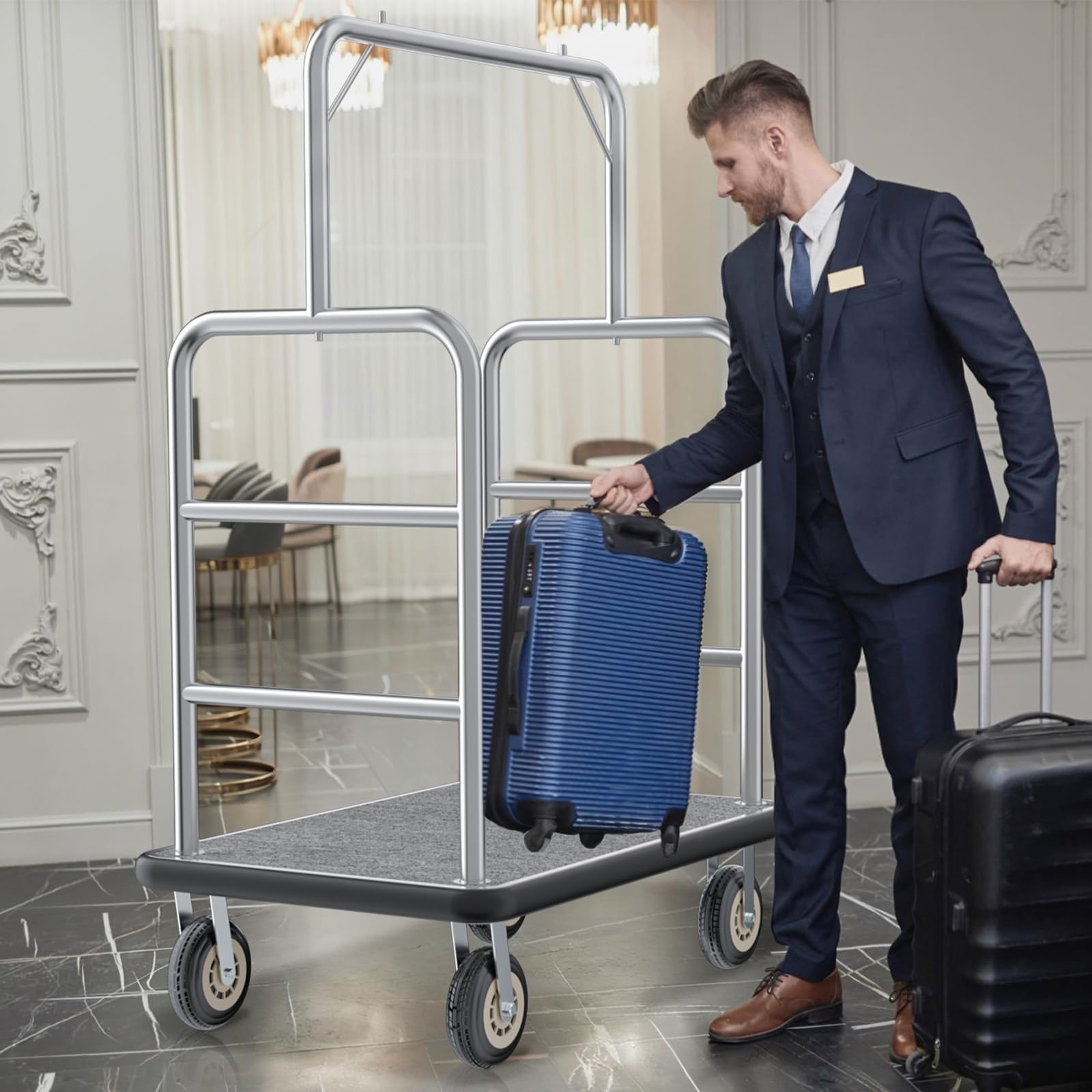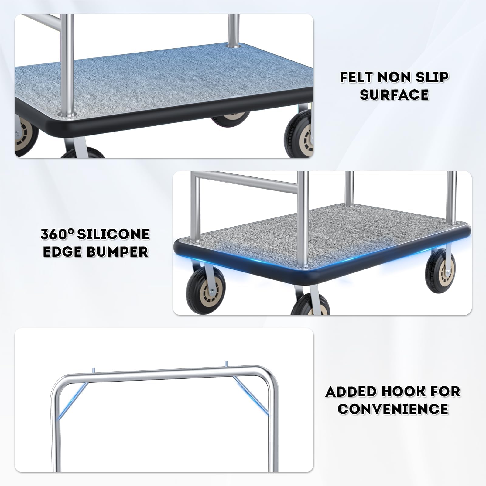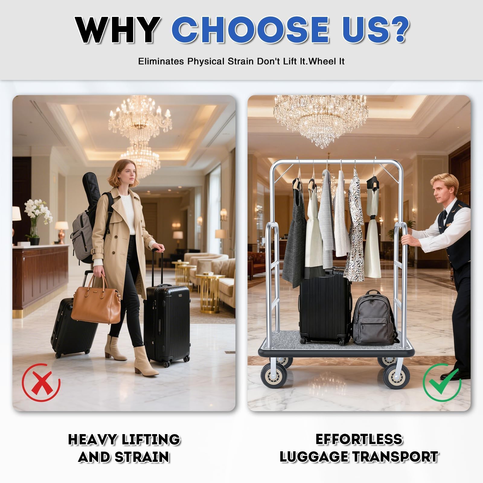 🔹 Exceptional 1300lbs Load Capacity - This heavy-duty commercial luggage cart supports up to 1300 pounds, making it ideal for moving large loads across hotels, airports, convention centers, and luxury resorts with total ease.