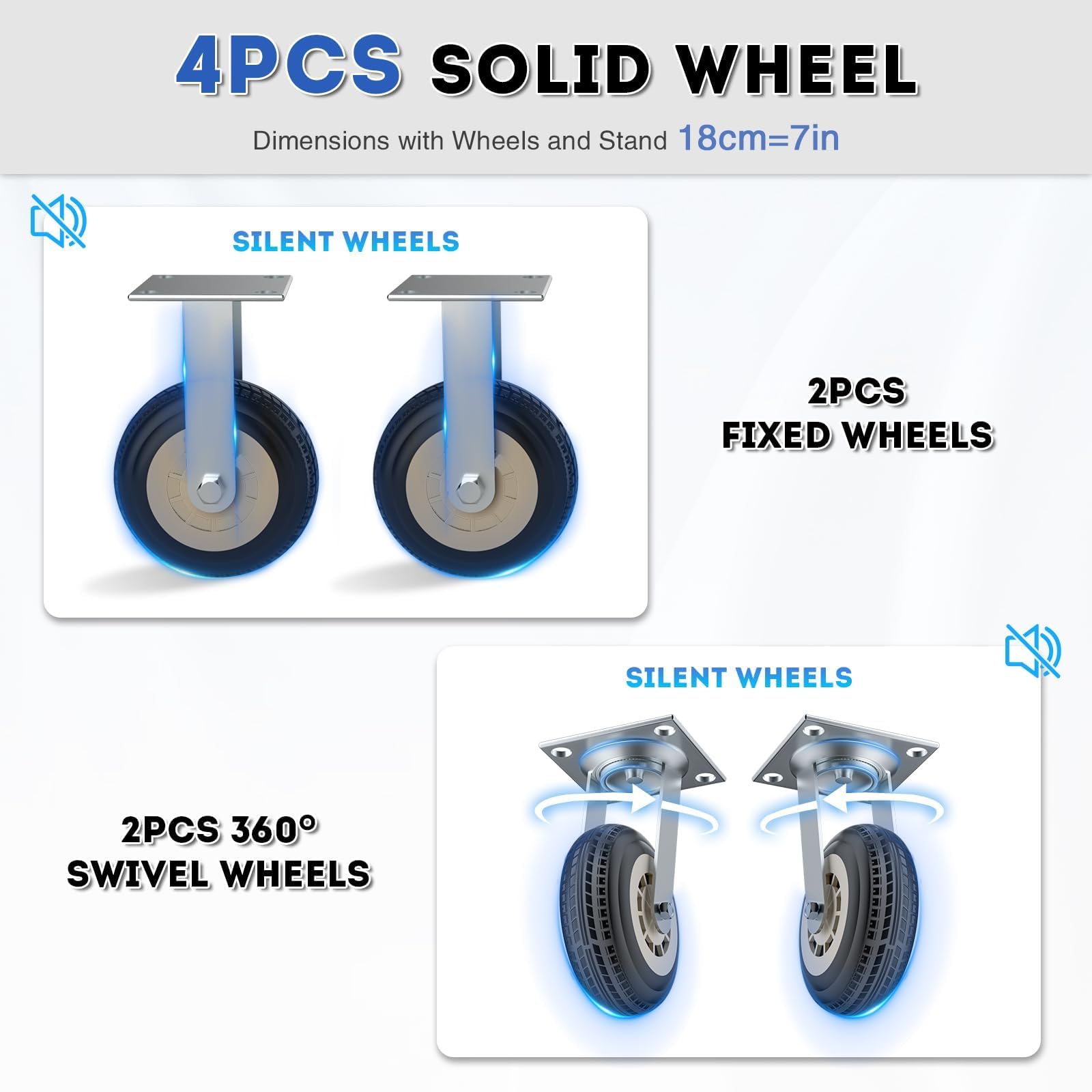 🔹 Durable 8" Wheels with Support Brackets - Equipped with 8-inch rubber wheels mounted on reinforced steel brackets, this bellman cart ensures smooth rolling, floor protection, and effortless maneuverability over carpets and hard floors.