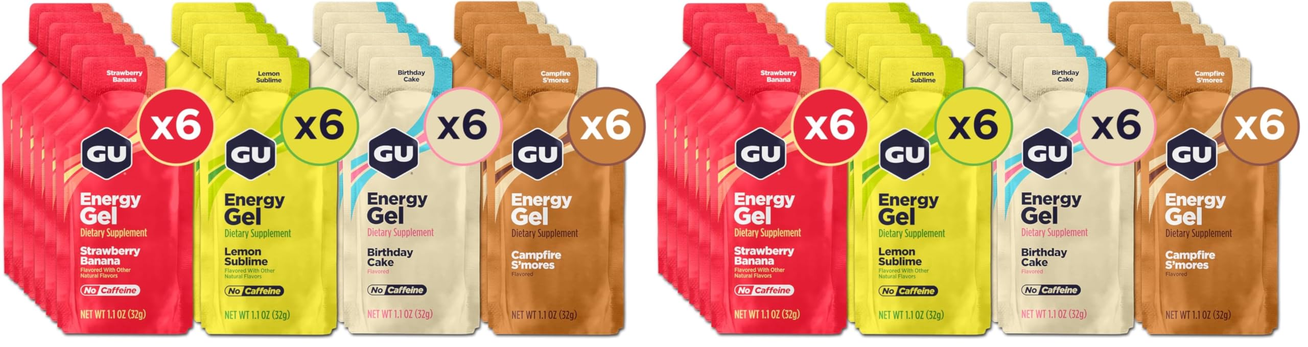 Caffeine-Free Variety Pack contains 24 gels; All flavors Vegan and Gluten Free