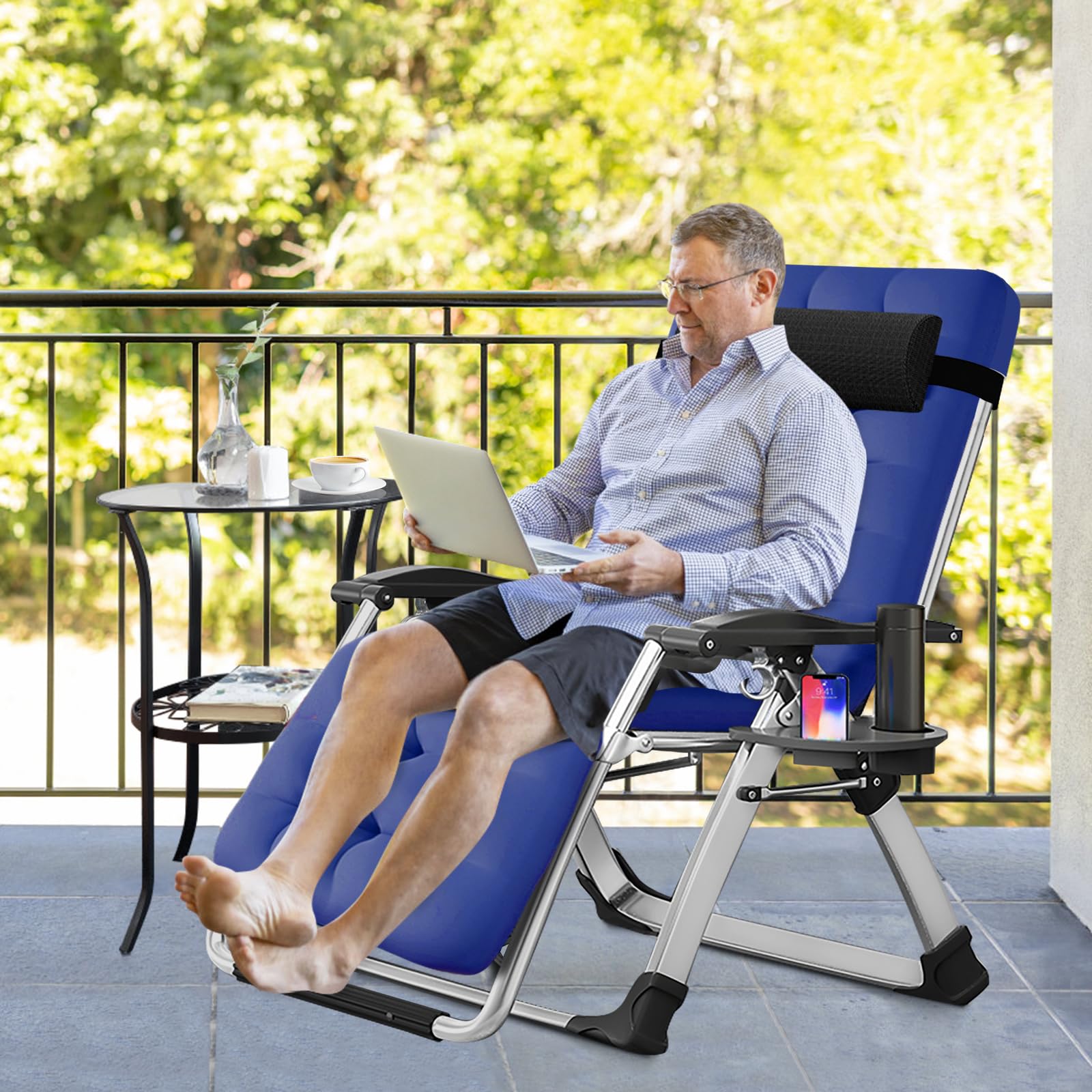 Comfortable Design: The outdoor zero gravity lounge chair is designed to satisfy your ultimate comfort. The armrest of folding lounge chair is thick and contoured. It will serve you whether sitting or lying, outdoor and indoor. Our recliner chair comes with a thick and soft pad