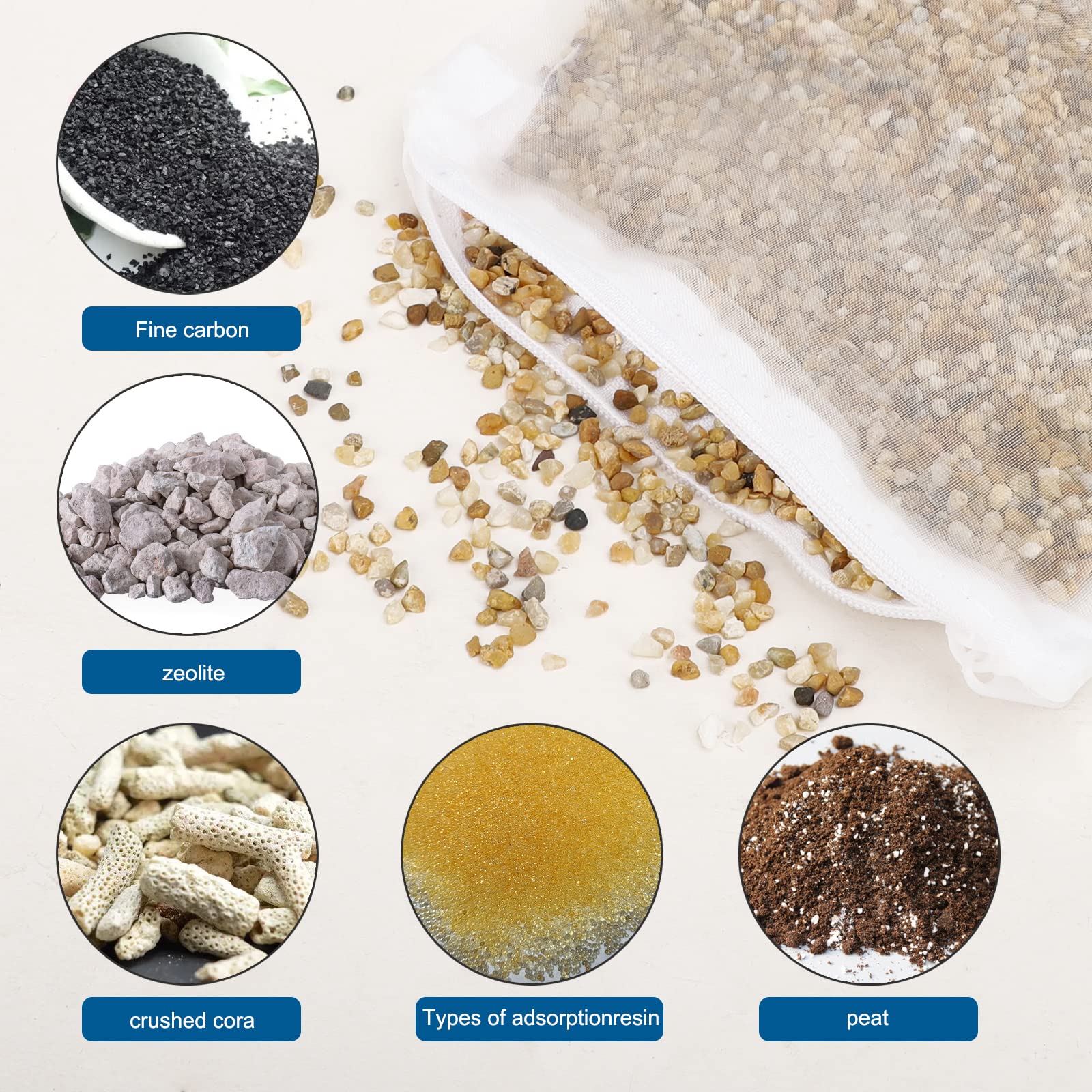 Easy to Use: These well-made filter media bags with sturdy top zipper design make media changes easy, easy to empty out as well as restuff. Made of high quality nylon so our mesh filter bags are durable for years use and completely safe for both fresh and saltwater aquariums. Note: do not overstuff the media in the filter bag to let water flows through the media easily!