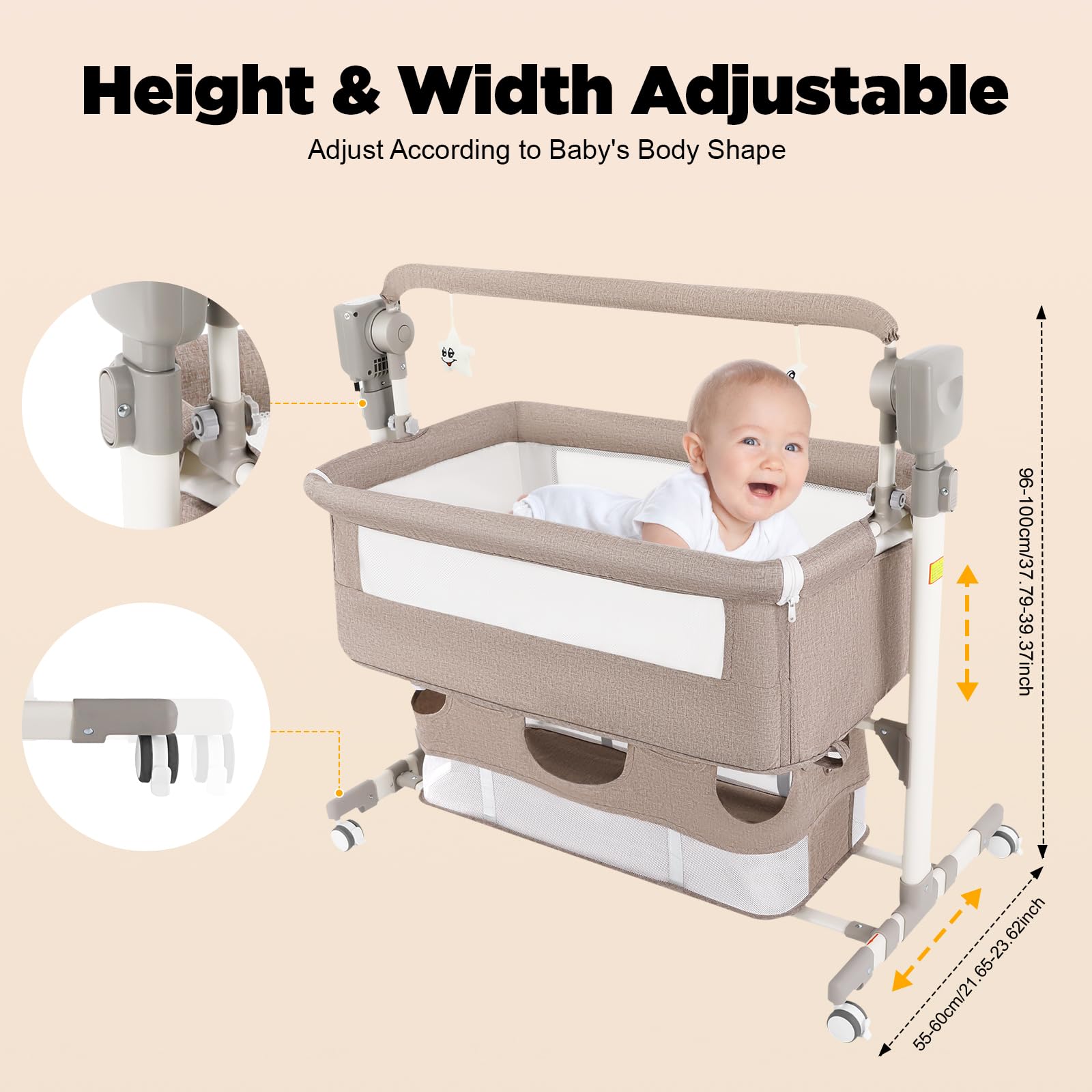 γππππππππππ ππππππ & πππππ γThe height (18.1-19.7 inches) and the length of the bottom crossbeam (21.7-23.6 inches) of this smart baby crib are adjustable. This enables you to easily place this smart baby crib together with your home bed. The bottom load-bearing crossbar has a load-bearing capacity of up to 20kg/44lbs, ensuring your baby sleeps comfortably and giving you peace of mind