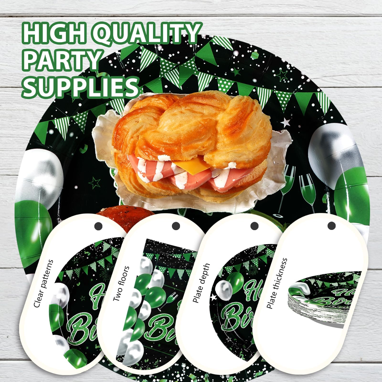 Premium Material: Our green paper plates and napkins are made of high quality thick paper. Green and black paper plates are solid and durable to resist cutting, no need to worry about bending or leaking; napkins are soft and thick to absorb water. Forks are made of high quality plastic, not easy to break. Pattern printing is beautifully clear and will not fade. Premium materials can withstand the rigors of lively celebrations (Tip: Do not microwave the plates)