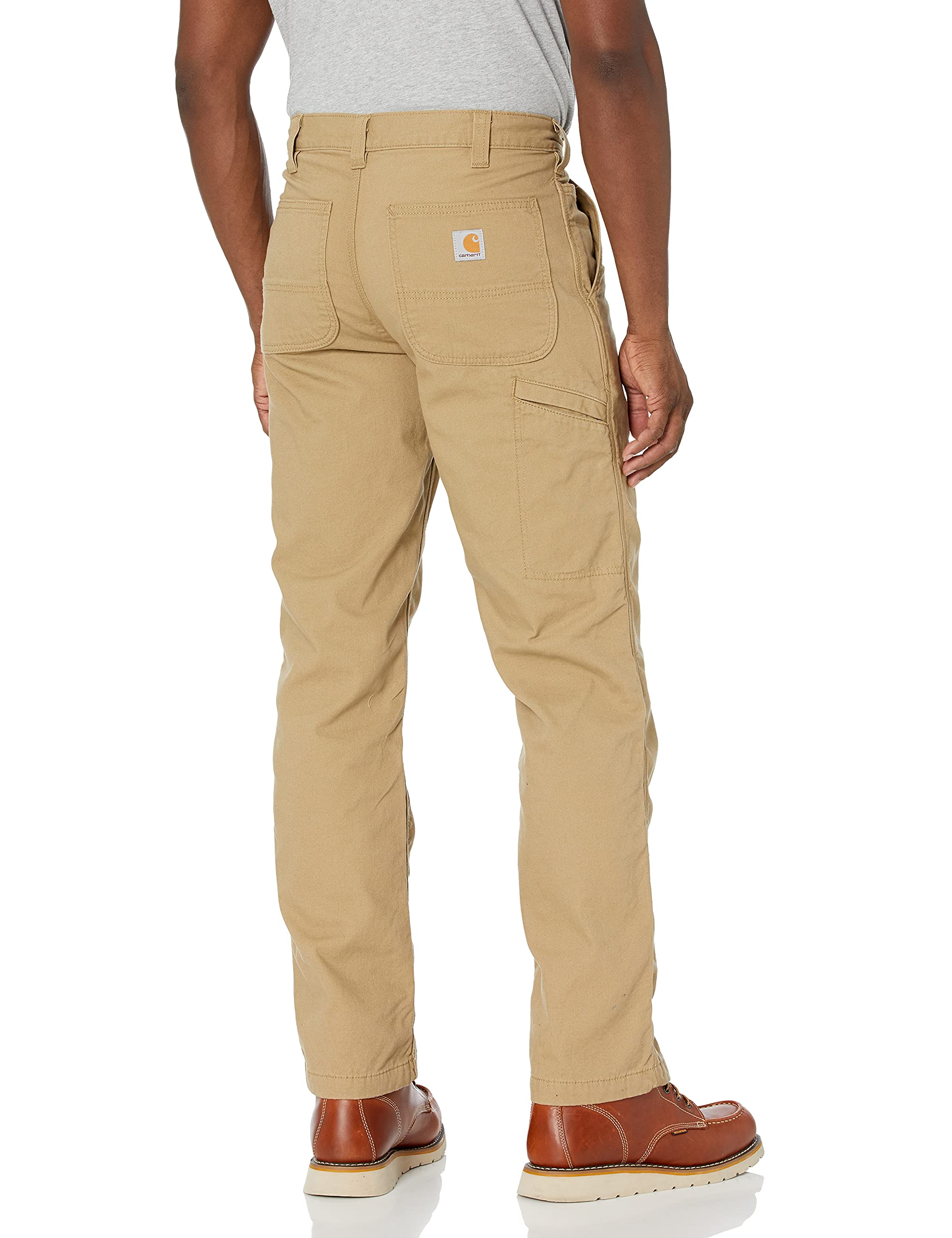 Description These relaxed fit dungarees are lined with a knit flannel for extra comfort and warmth. 8-Ounce, 98 percent cotton/2 percent spandex canvas • 2.3 ounce 100 percent polyester knit flannel lining • built with rugged flex to bend and stretch with you as you move • sits at the waist • relaxed seat and thigh • reinforced front slash pocket • stronger sewn-on-seam belt loops • right-leg secured cell phone pocket • straight leg opening fits over boots • imported