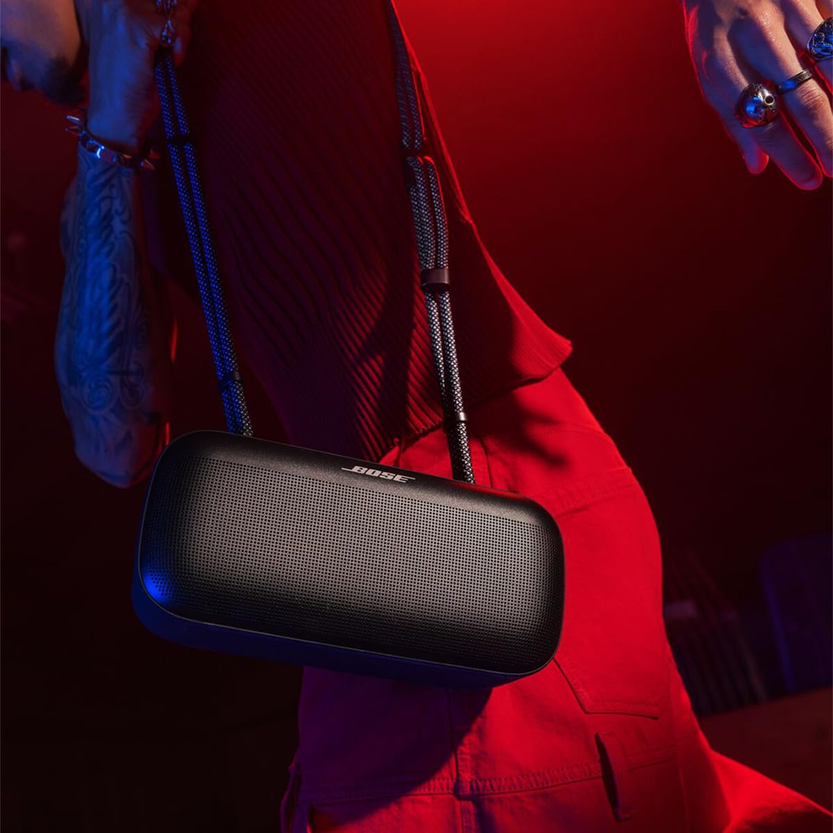 Whether you're the go-to DJ in your crew or a curator with the best playlists, the Bose SoundLink Max Speaker is the ultimate party starter. The stereo sound and deep bass turn good times to the max, letting you feel the music from your head to your toes. And with a trendy removable handle, you can take the party anywhere.Water and dust-proof features mean it's perfect for a poolside, beach, or rooftop hang. And when someone spills a drink or you run into unexpected showers, it never knocks the vibe. Thanks to the epic battery life, you can keep bumping the playlist for up to 20 hours , so the party can start in the day and carry on through the late night.Phone battery is running low? The USB-C port has got you covered. Power up from the speaker's built-in battery. Get yours in Black or Blue Dusk.Big sound that wows the party.The Bose SoundLink Max Speaker is the ultimate party starter. Whether you're the go-to DJ in your crew or a music lover with the best playlists, now is your time to turn up the vibe. Press play for deep bass you can feel in your body and all around you.Vibe wherever you are.The removable handle, crafted with a unique soft-textured, climbing rope design makes the portable speaker easy to pick up and carry to any location. Whether you're at a birthday rager or a chill outdoor hang, all you need to do is press play and let the music do the rest.Water and dust-proof. Built to play through whatever.There's no need to stress about mishaps like a drink spill, a splash from the pool, or bad weather ruining the good time. Water and dust-proof features with an IP67 rating means the SoundLink Max Speaker can last through the unexpected.Battery life keeps the party going.Extraordinary power keeps the music going for up to 20 hours - giving you the freedom to listen all day and night. Want to take the tunes outdoors? Play time this lengthy is perfect for an unplugged celebration.Power up while listening.When your phone battery starts running low, the USB-C port lets you charge up from the speaker's built-in battery. If the SoundLink Max Speaker has power, your phone stays on - and so does the music.Press play. Listen how you want.The SoundLink Max Speaker gives you options on how you can play your music. The AUX input feature lets you enjoy tunes by connecting an audio jack to wired playback sources so you can choose music from turntables, and CD or MP3 players.Bose app gives you full control.The Bose app lets you control bass, mid-range, and treble levels to make sure the music hits the way it should. You can also use the app to check battery life, customize a shortcut, and manage your connected devices.Want to hear your music in the next room? It's simple.Already have a Bose smart speaker or soundbar? SoundLink Max Portable Speaker has Bose SimpleSync compatibility so you can create a multi-room experience. To extend sound throughout your home, open the Bose app and connect the SoundLink Max Speaker with your existing Bose smart soundbars or speakers. And there you have it, wider sound with all the range.Features The speaker has awe-inspiring stereo sound that's way bigger than it appears. It's designed to wow you with deep bass that starts a good time and turns it to the max. Hit play, feel the music in your core - and all around you The handle makes the portable speaker easy to pick up and carry to any location. Whether at a sunset on the beach, a birthday rager, or a chill outdoor hang, all you need to do is press play and let the music do the rest. Up to 20 hours of battery life keeps the music going for extended listening. It's perfect for an outdoor celebration where you may not have access to power for a while. Worry-free listening means spilled water, a splash from the pool, or bad weather won't stop the music. Waterproof, dustproof with IP67 rating, plus shock and rust resistance lets sound last through the unexpected If your phone battery runs low, the USB-C port lets you charge your device through the speaker's built-in battery. If the SoundLink Max Speaker has power, your phone stays on - and so does the music You don't need Bluetooth to play your music. The AUX input lets you listen to tunes from playback sources like turntables, and CD or MP3 players Create a personalized listening experience with Adjustable EQ settings through the Bose app. Control bass, mid-range, and treble levels to make sure the music hits the way it should. Use the app to check battery life, customize a shortcut, and connect and manage devices Google Fast Pair makes connecting your speaker to your Android device easier than ever Multi-point allows the speaker to maintain a Bluetooth connection with two devices at the same time Bose SimpleSync compatibility lets you create a multi-room experience. Open the Bose app and group the SoundLink Max Portable Speaker with your existing Bose smart soundbars and speakers Moisture detection protects the product from hazardous water and electrical damage. When the USB port
