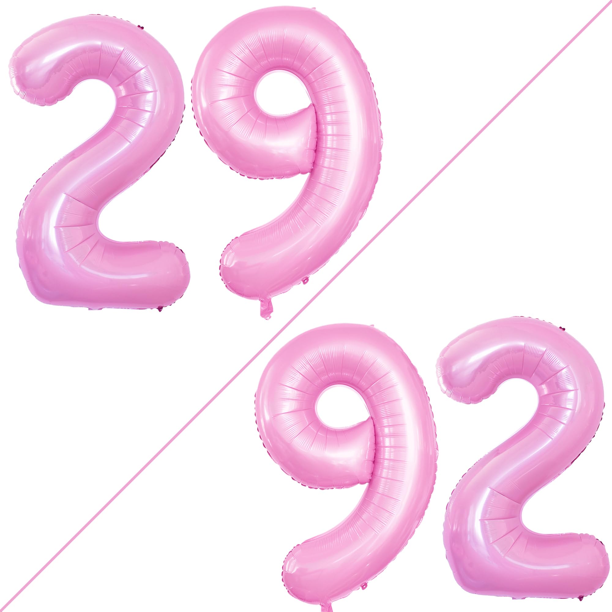GOER 42 Inch Helium Foil Number 29/92 Balloons for 29th 92nd Birthday Party Decorations and Anniversary Event,Perfectly Decorate Your Party and Giving a Deep Impression to Everyone> Features: Made of food grade material,safe and non-toxic Polymer double-layer thickening anti-explosion material.Light and sturdy, just fill with 90% helium to float Color uniform and beautiful,even can be used as a mirror Can be reused,use the straw to deflated balloons after party end Package Includes: Number 2 and 9 Balloons,NO HELIUM COME WITH THESE BALLOONS Straw*1 How to Use Foil Balloons: Inflate slowly,just fill 90% of the balloons'space that could allows the balloon to expand completely