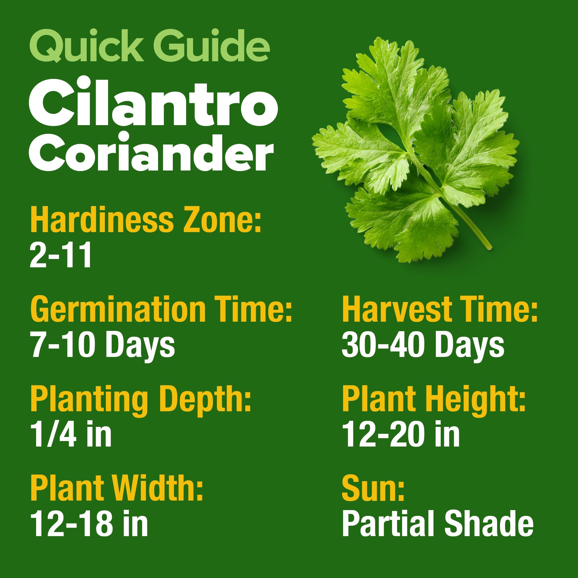 DUAL HARVEST (CILANTRO & CORIANDER): Get two spices for the price of one! Harvest the fresh green leaves (Cilantro) for zesty Tacos and Salsa. Or, let the plant mature and turn brown to harvest the dried seeds (Coriander), a warm, citrusy spice essential for Indian Curries and baking.