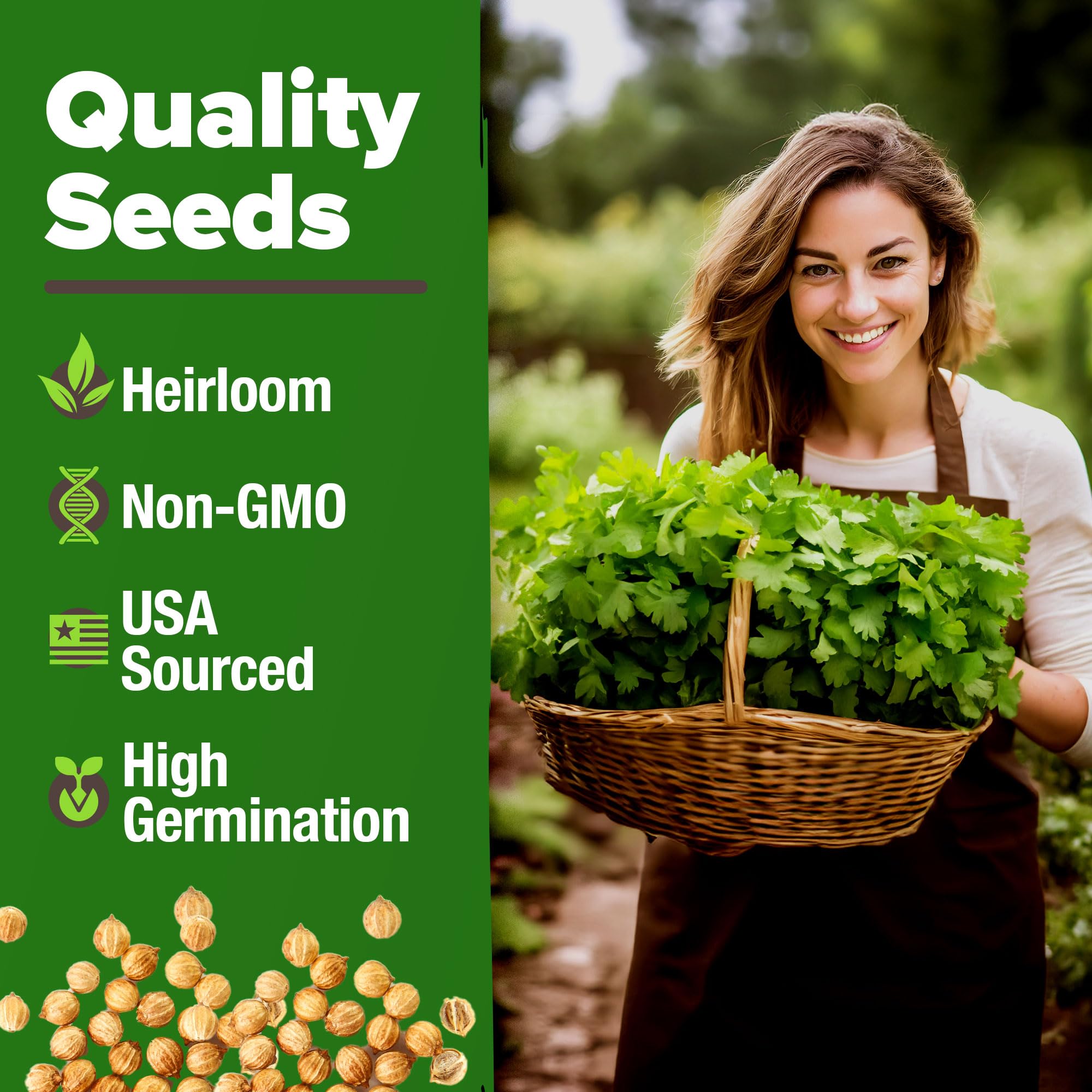 Garden Essentials: Premium organic cilantro seeds for planting outdoors or in your kitchen herb garden; Non-GMO heirloom seeds produce flavorful cilantro plants that enhance any dish; Slow bolt variety for extended harvest