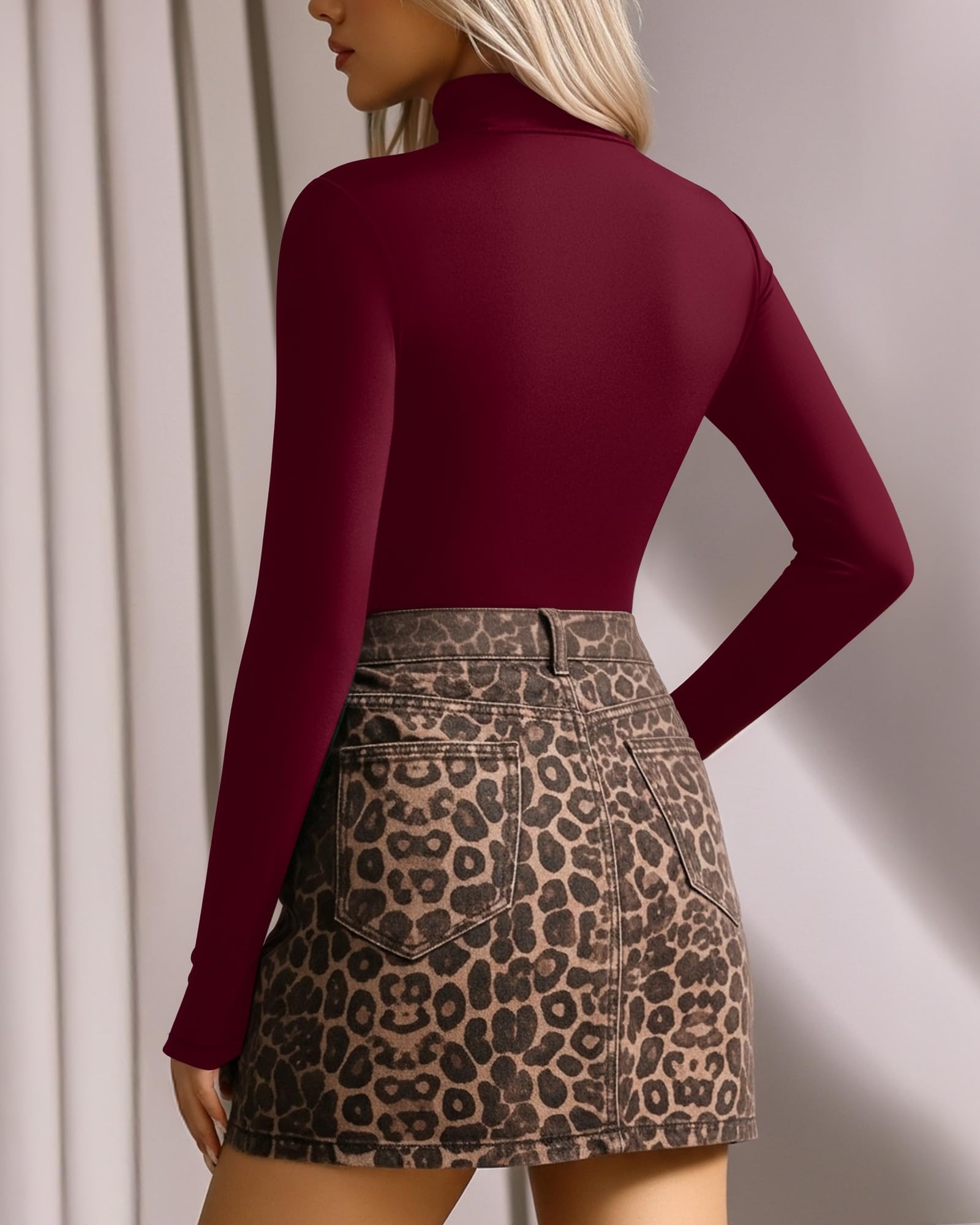 Versatile Style: Women's mock neck bodysuit is comfortable and versatile, easily paired with pants, shorts, or skirts to enhance your look. It features two snap buttons at the bottom for convenient wear.