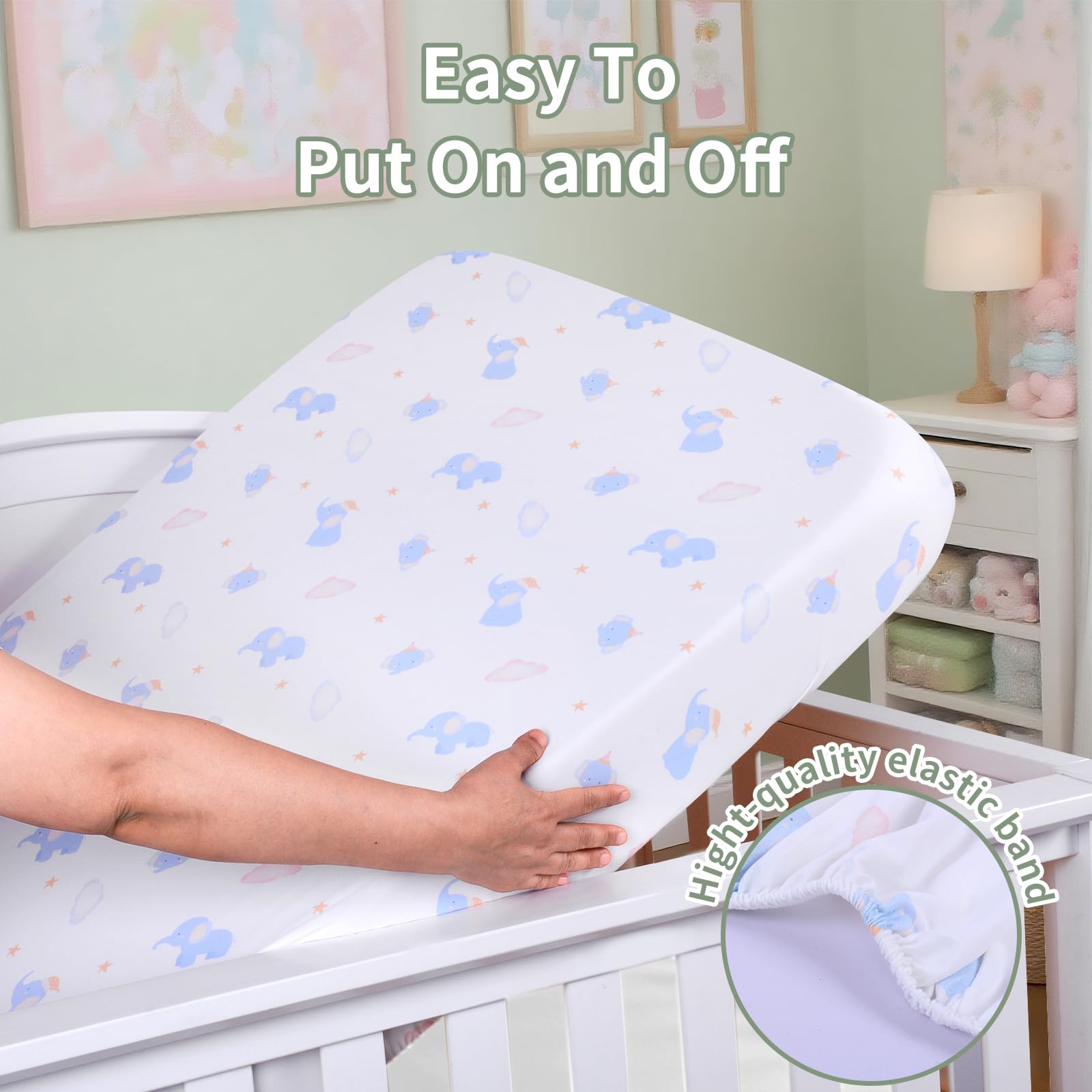 【CRIB SHEET WRAP IN 360 DEGREE】:Dimension 28" x 52" for standard crib and toddler mattresses.The Cute Crib sheet will wrap your baby mattress in 360 degree,which can make it solid non-slip more break and be suitable for all kinds of baby sleeping positions Fits all standard Crib Mattresses and Toddler Bed Mattresses.