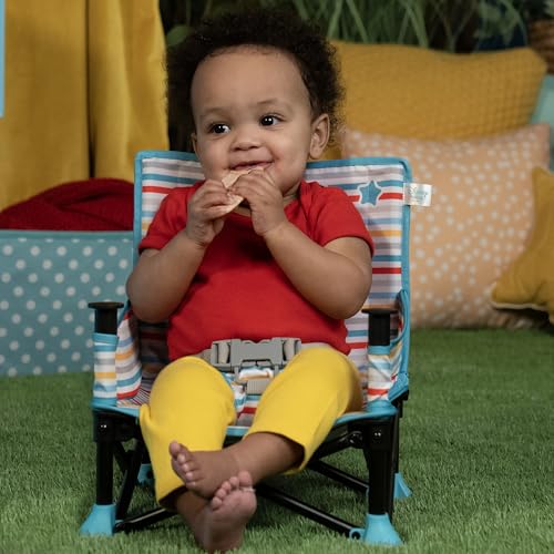 Get to know the original Pop N Sit portable booster from Bright Starts! From inside to out, baby to toddler, and mealtime to playtime, this multi-purpose travel booster offers your little one a secure place to sit - no matter what the day has in store. Features 3 modes of use: floor seat, feeding seat with removable tray, and toddler booster. For babies, attach the seat to an adult chair using the included straps and BPA free tray to create a portable feeding seat. For toddlers, use the seat as a booster that can pull up to the table by removing the tray. In floor mode, you can use the Disney Mickey Mouse Pop N Sit whenever you need an extra seat - picnics, sporting events, or right at home! The rear storage pocket holds your daily essentials. Folds compactly when not in use and includes a carrying bag with shoulder strap. Features a dishwasher safe tray and machine washable seat pad. Dimensions: 15 x 13.5 x 14.75 or 5 x 15 when folded. Made for 6 months to 3 years old or up to 37 lbs.