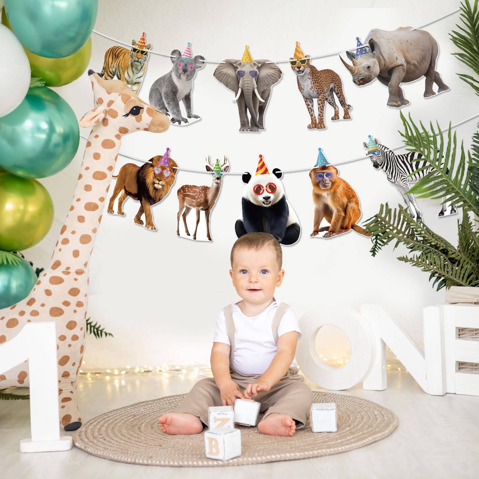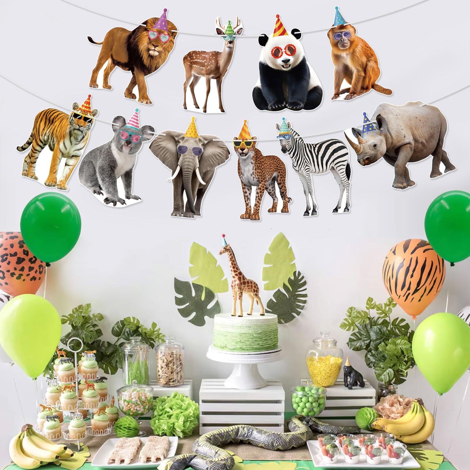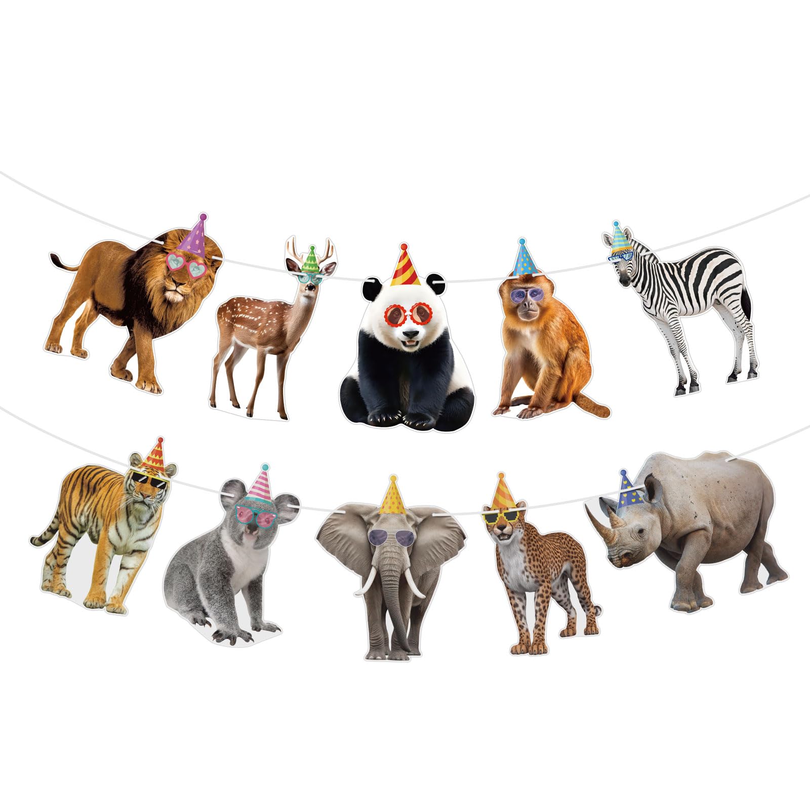 Reliable Quality: This animal party garland is made of premium cardstock, each banner flag card measures approximately 6.9" x 5", sturdy cardstock ensures durability, printed with vivid wild animals to liven up your safari birthday decorations