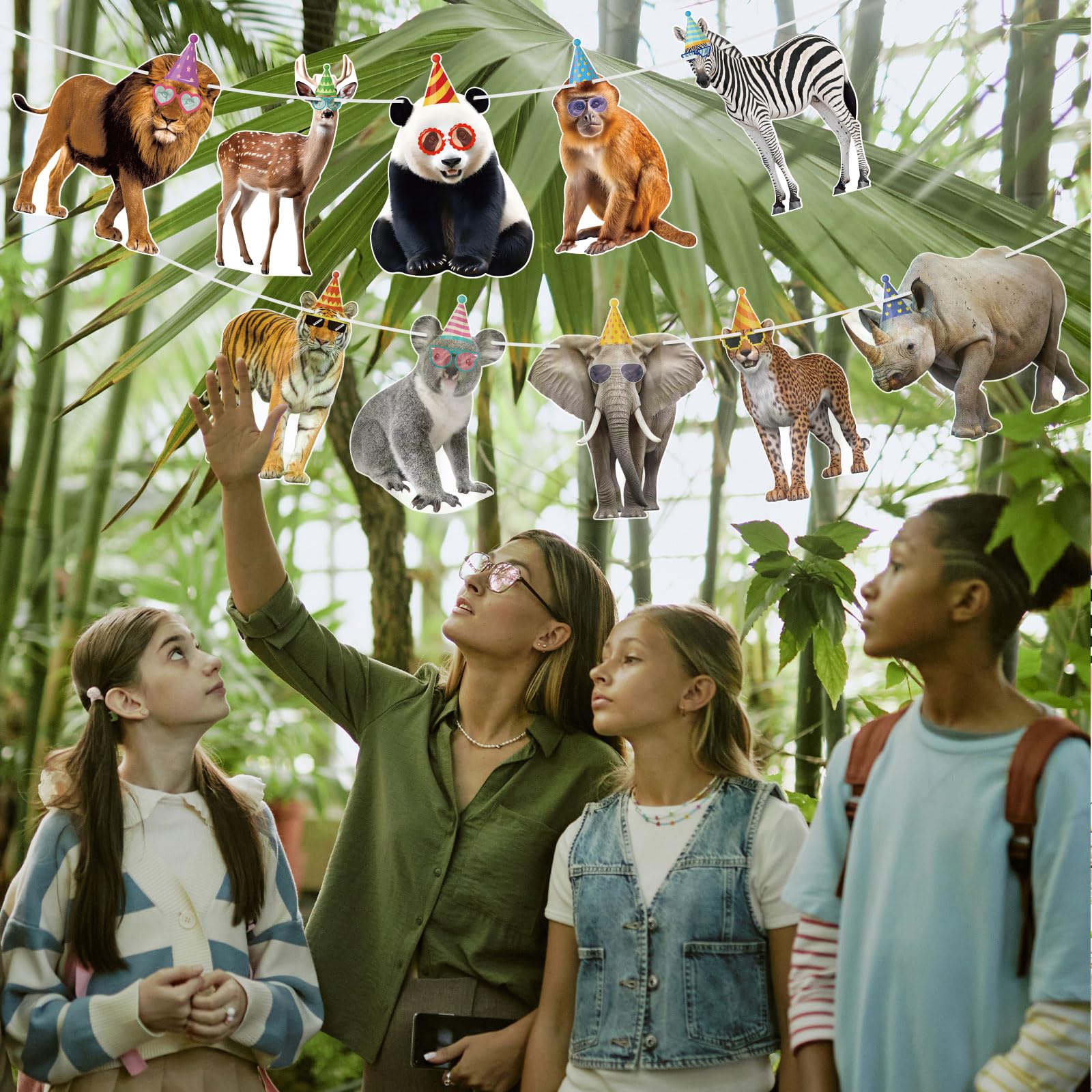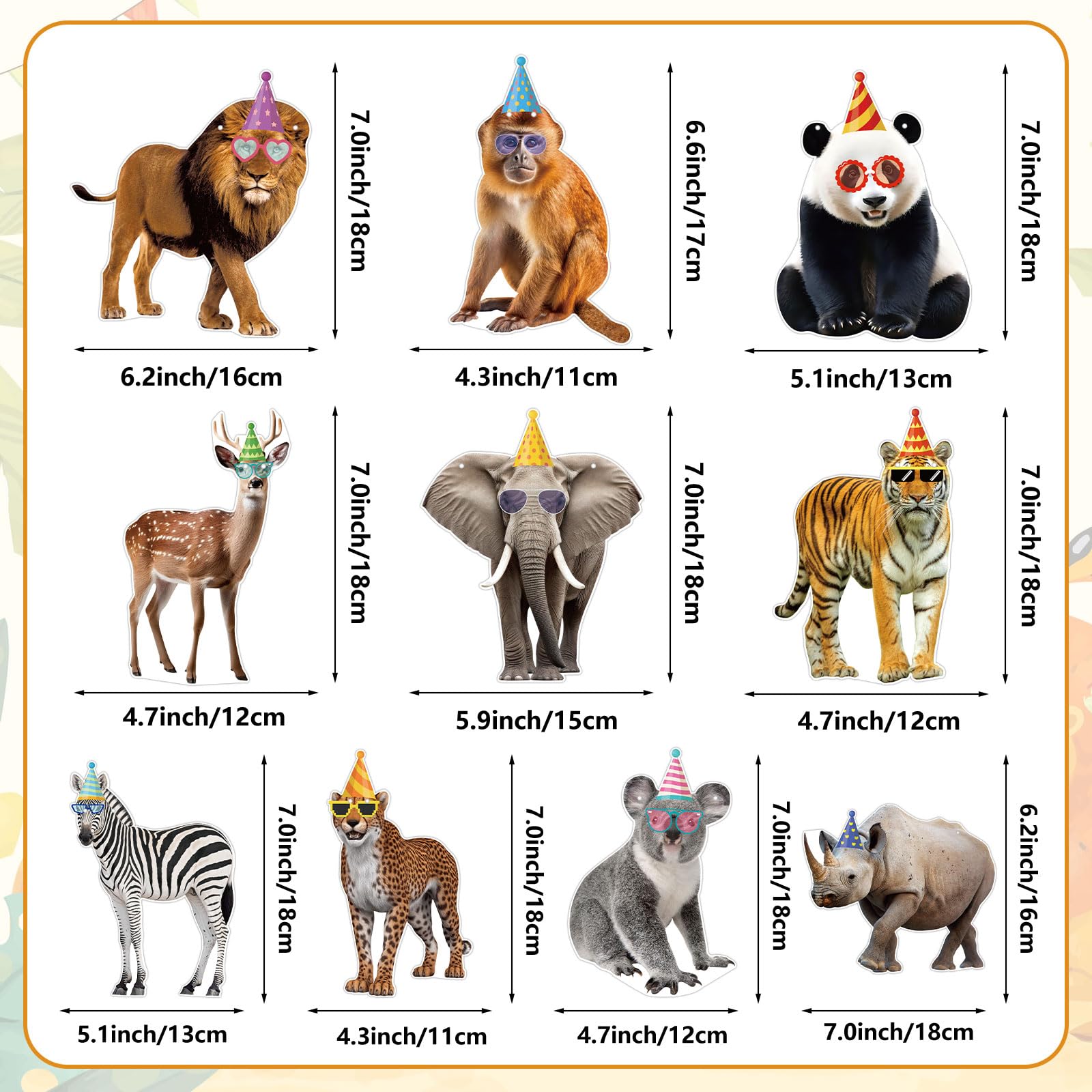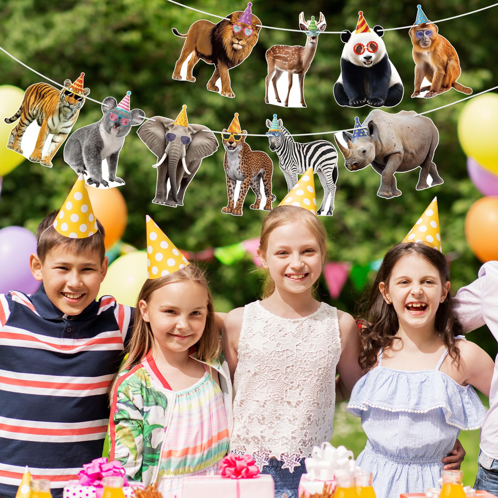 Reliable Quality: This animal party garland is made of premium cardstock, each banner flag card measures approximately 6.9" x 5", sturdy cardstock ensures durability, printed with vivid wild animals to liven up your safari birthday decorations