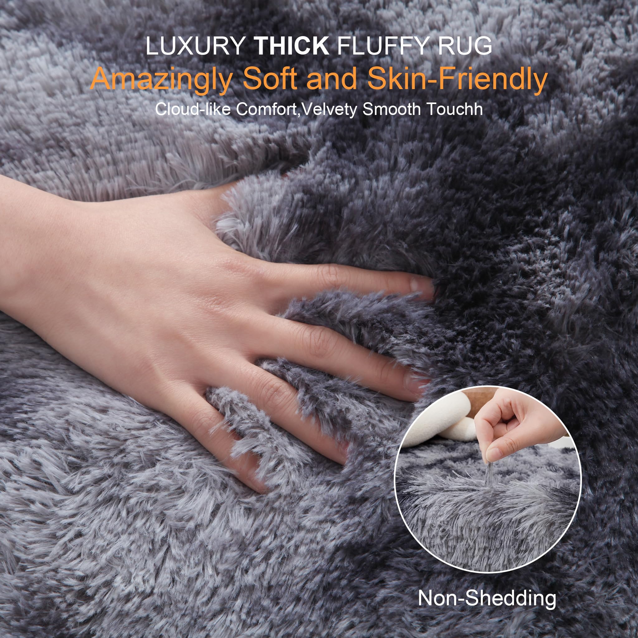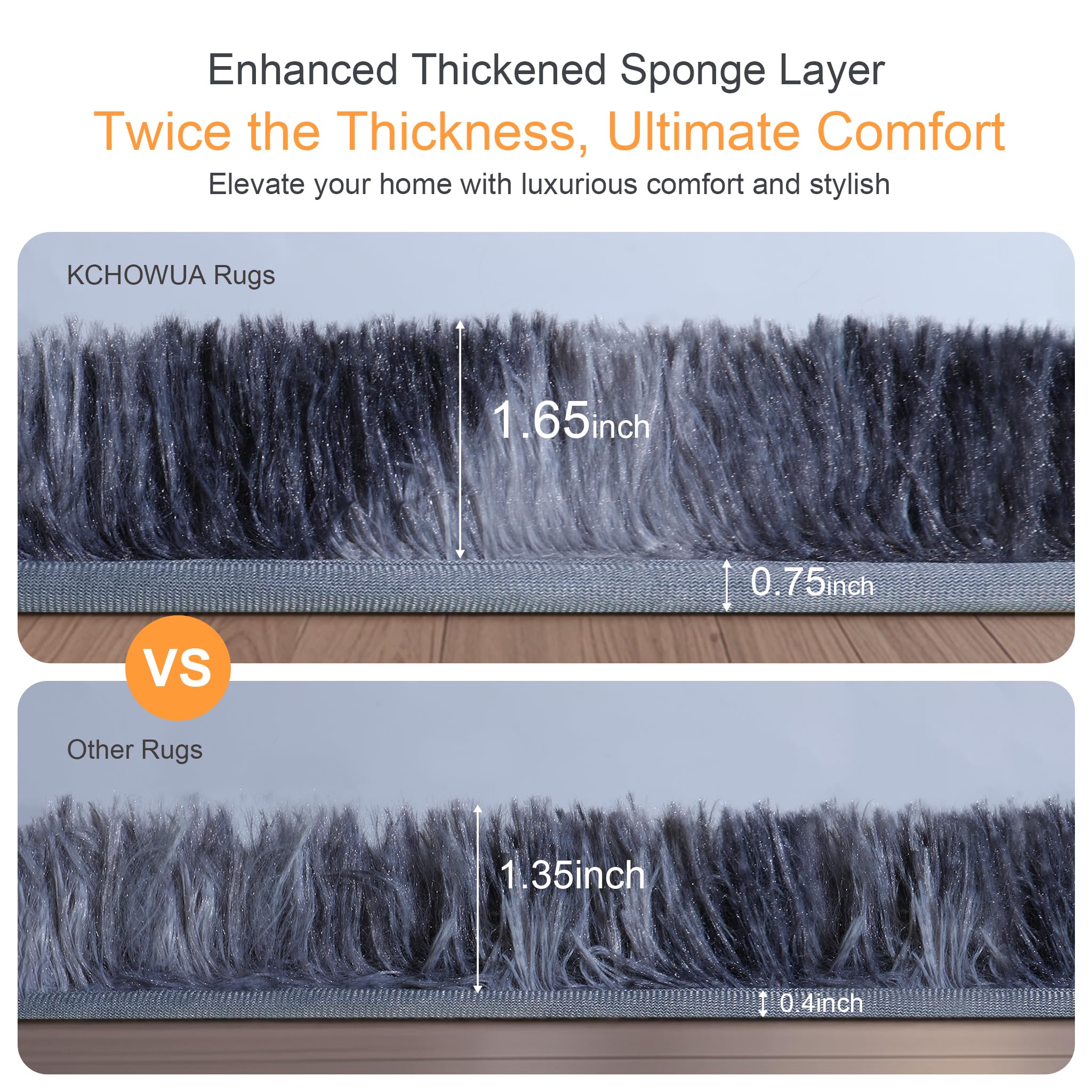 Ultra Softness & Luxurious ComfortοΌ Indulge in unmatched softness with our shaggy fuzzy rug, crafted from premium velvet fibers for a silky-smooth, ultra-plush texture. Featuring an extra-thick 1.65-inch high-pile surface and a 0.75-inch cushioned memory foam layer, this luxurious area rug is twice as thick as standard options, delivering exceptional comfort with every barefoot step. Whether you're starting your day with a soft, cloud-like landing, relaxing in the living room, or creating a cozy play area for kids and pets, this ultra-plush carpet enhances warmth, absorbs noise, and transforms any space into a peaceful retreat.