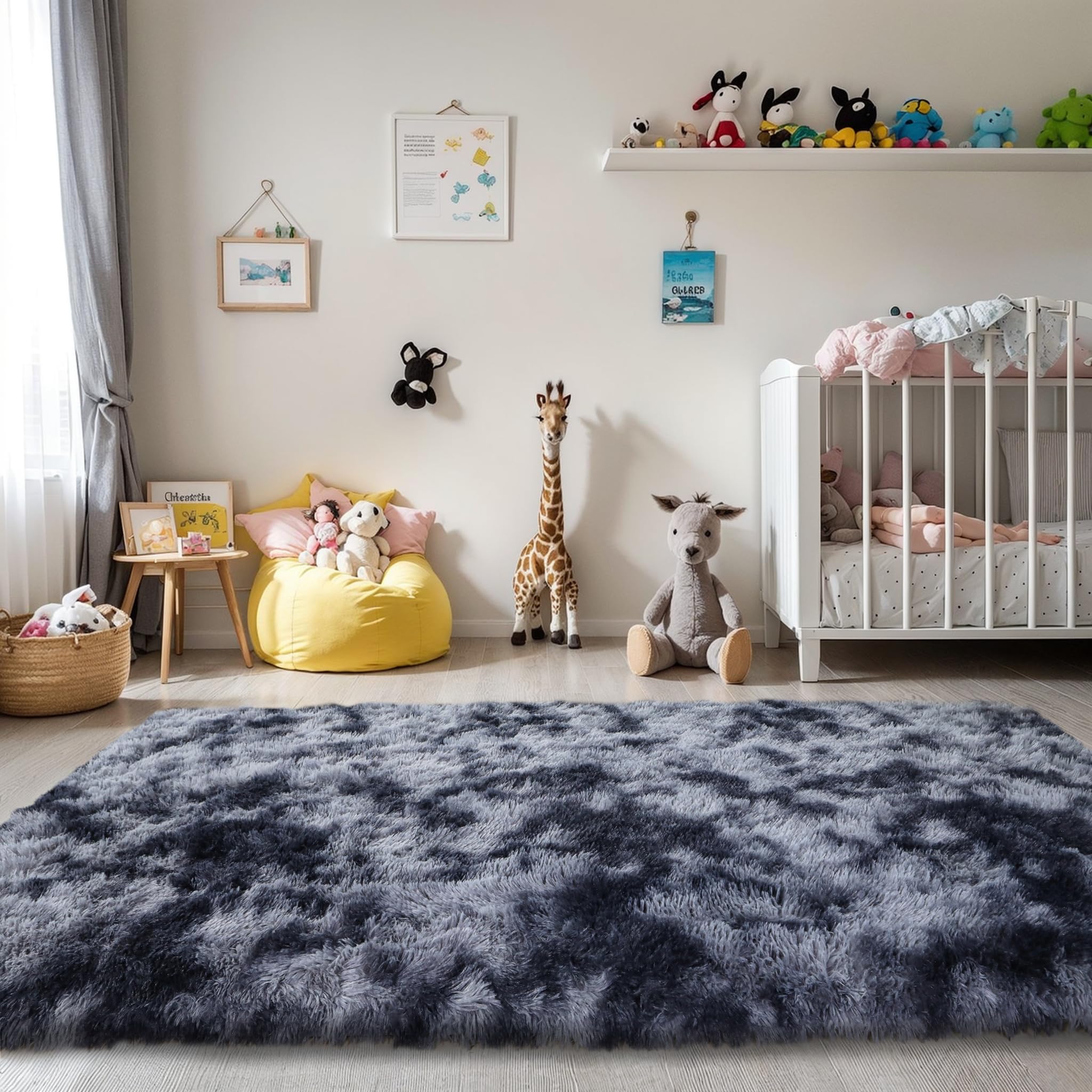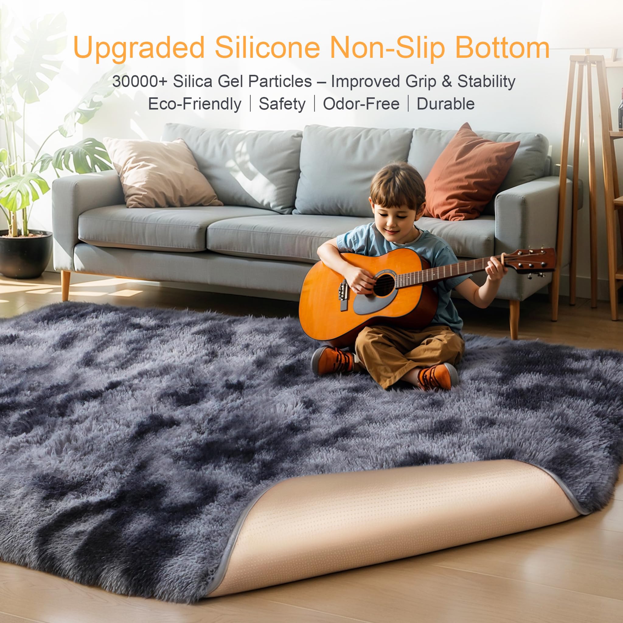 Upgraded Silicone Non-Slip Bottom: Designed for ultimate stability and comfort, this shaggy fuzzy rug features an upgraded silicone backing with 30,000+ grip particles, providing superior traction on hardwood, tile, vinyl, and laminate floors. Made from odor-free, skin-friendly, and eco-conscious materials, it ensures a safe and cozy space for kids. The durable and soft design provides long-lasting comfort. Perfect for bedrooms, nurseries, dorms, and play areas, this ultra-plush rug enhances any space with warmth and style.