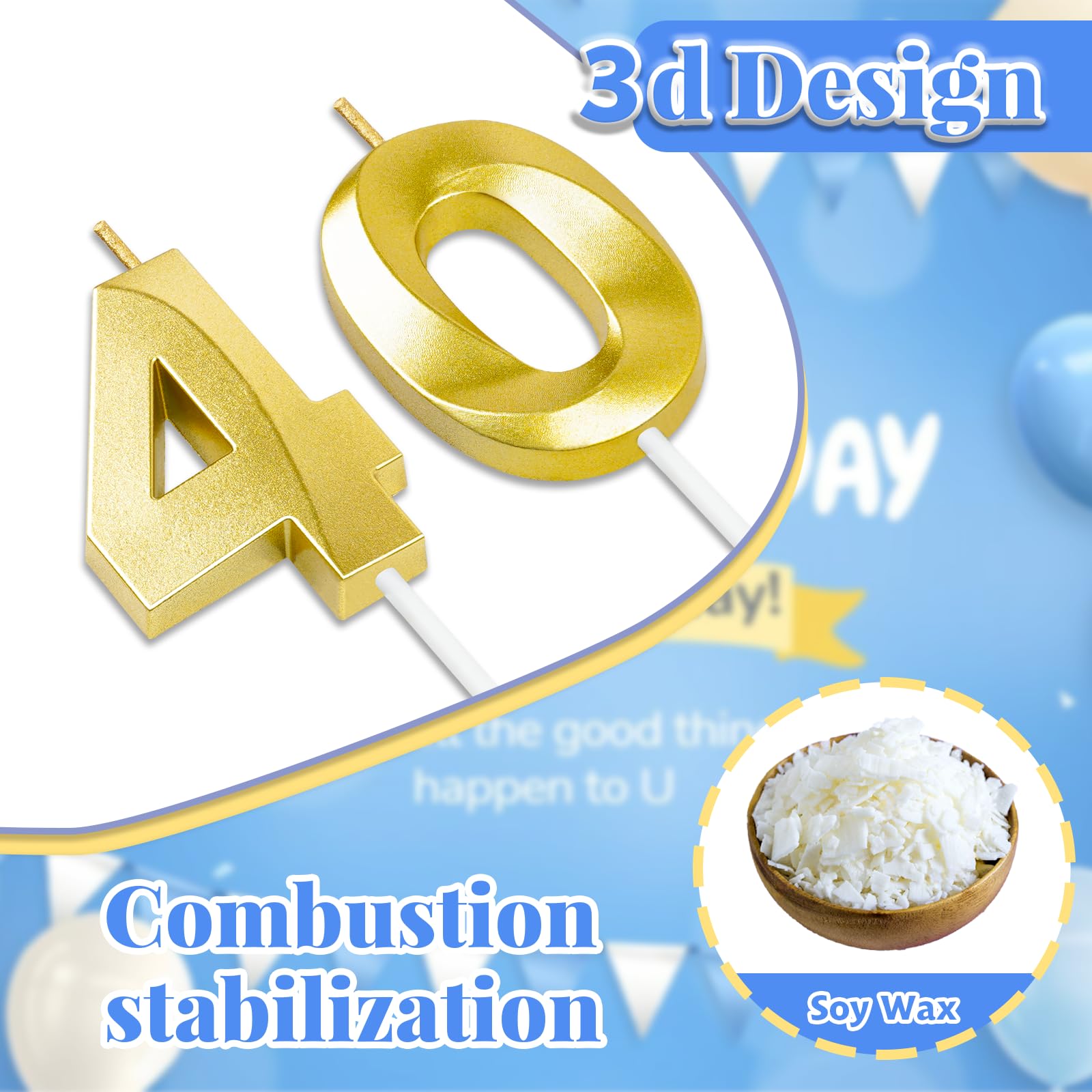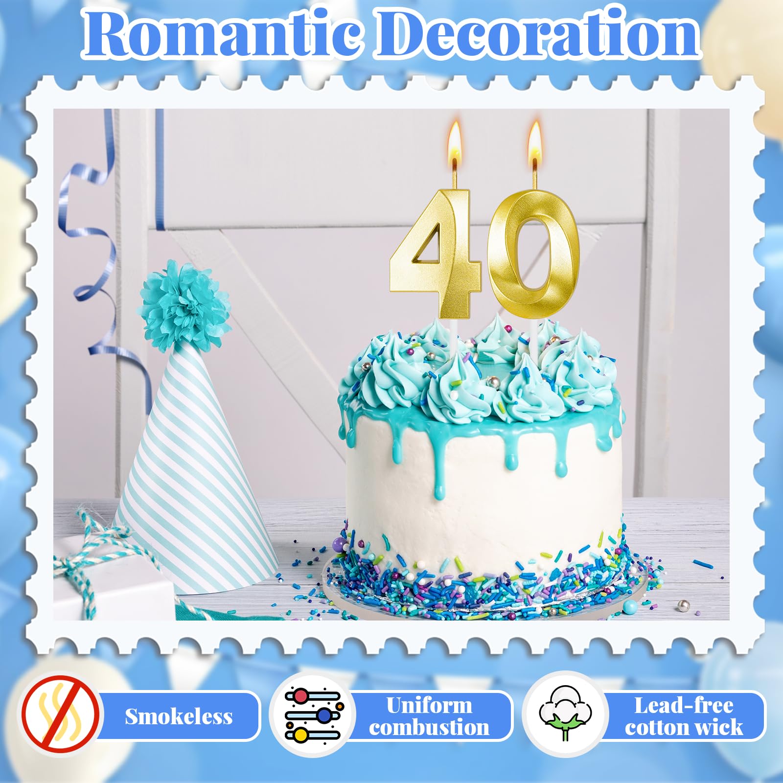 Material : Our birthday candles are made of high quality wax. The candles burn smoothly and steadily, smokeless.