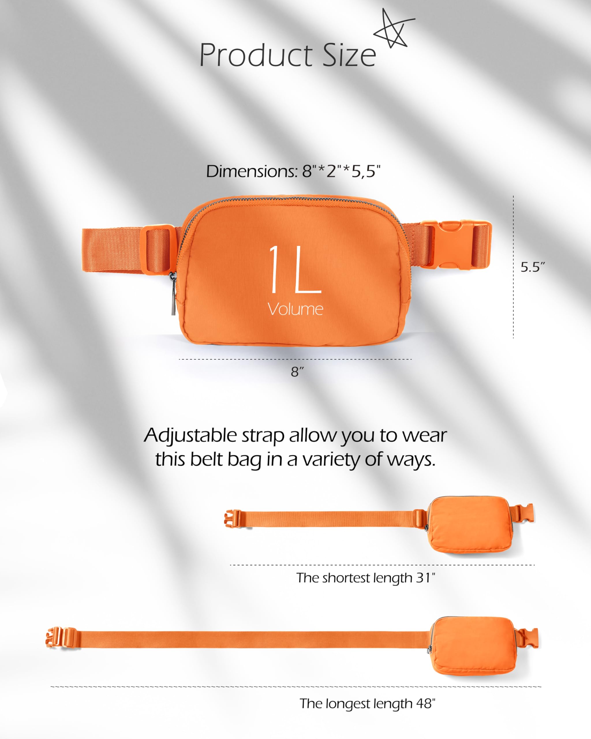Versatile Style: Adjustable Strap allow you to wear this belt bag in a variety of ways. It can be carried as cross bag, shoulder bag, waist bag or handbag. It’s all up to you.