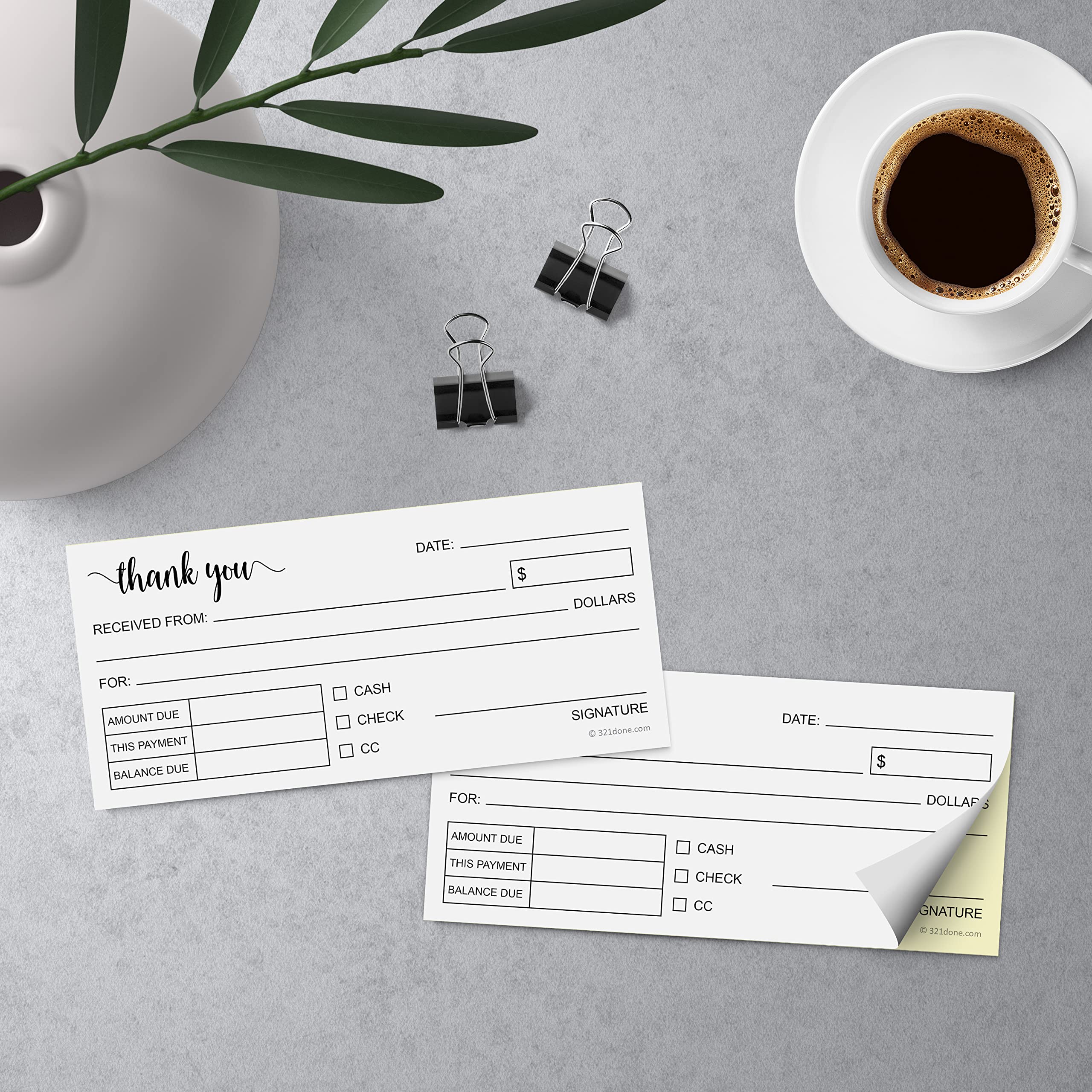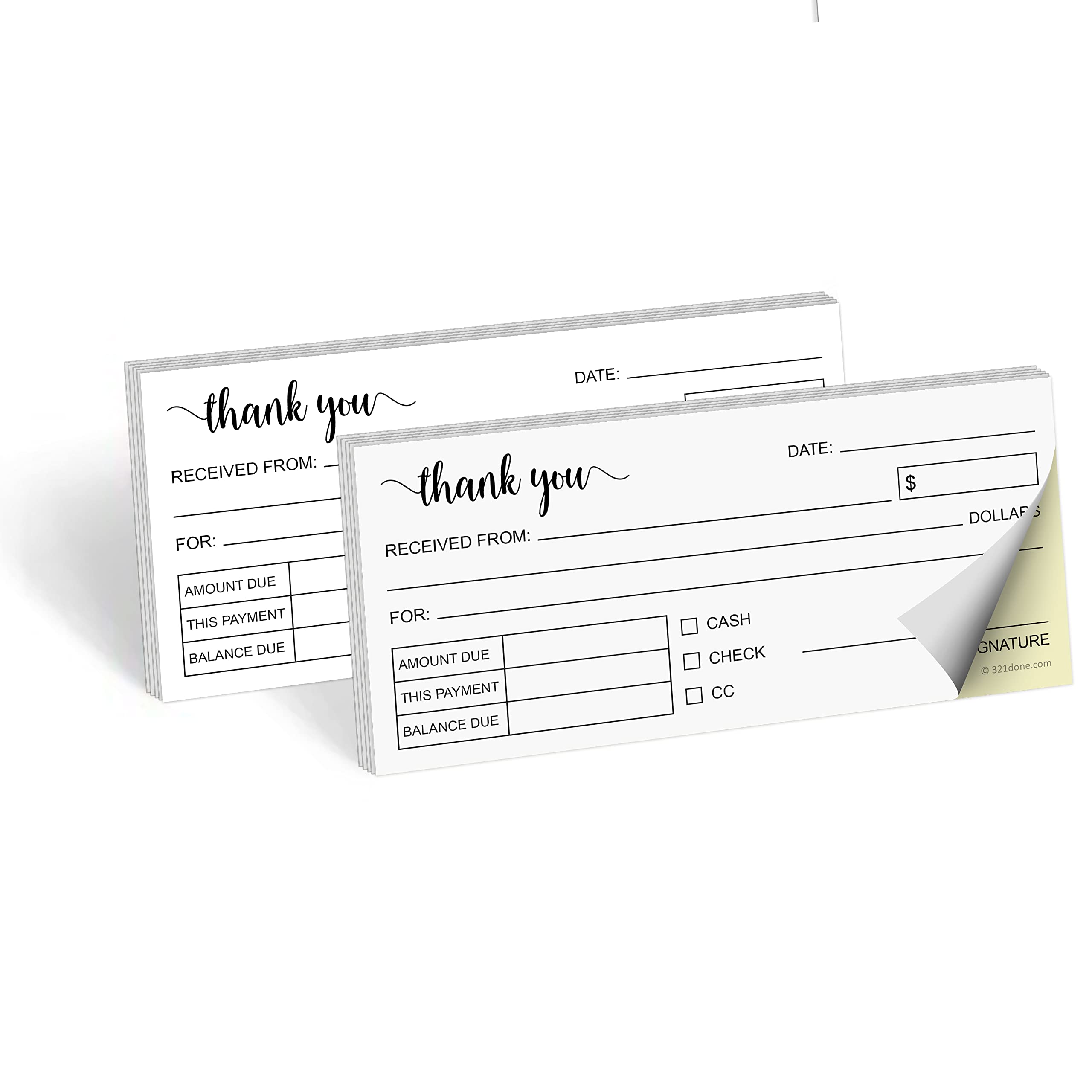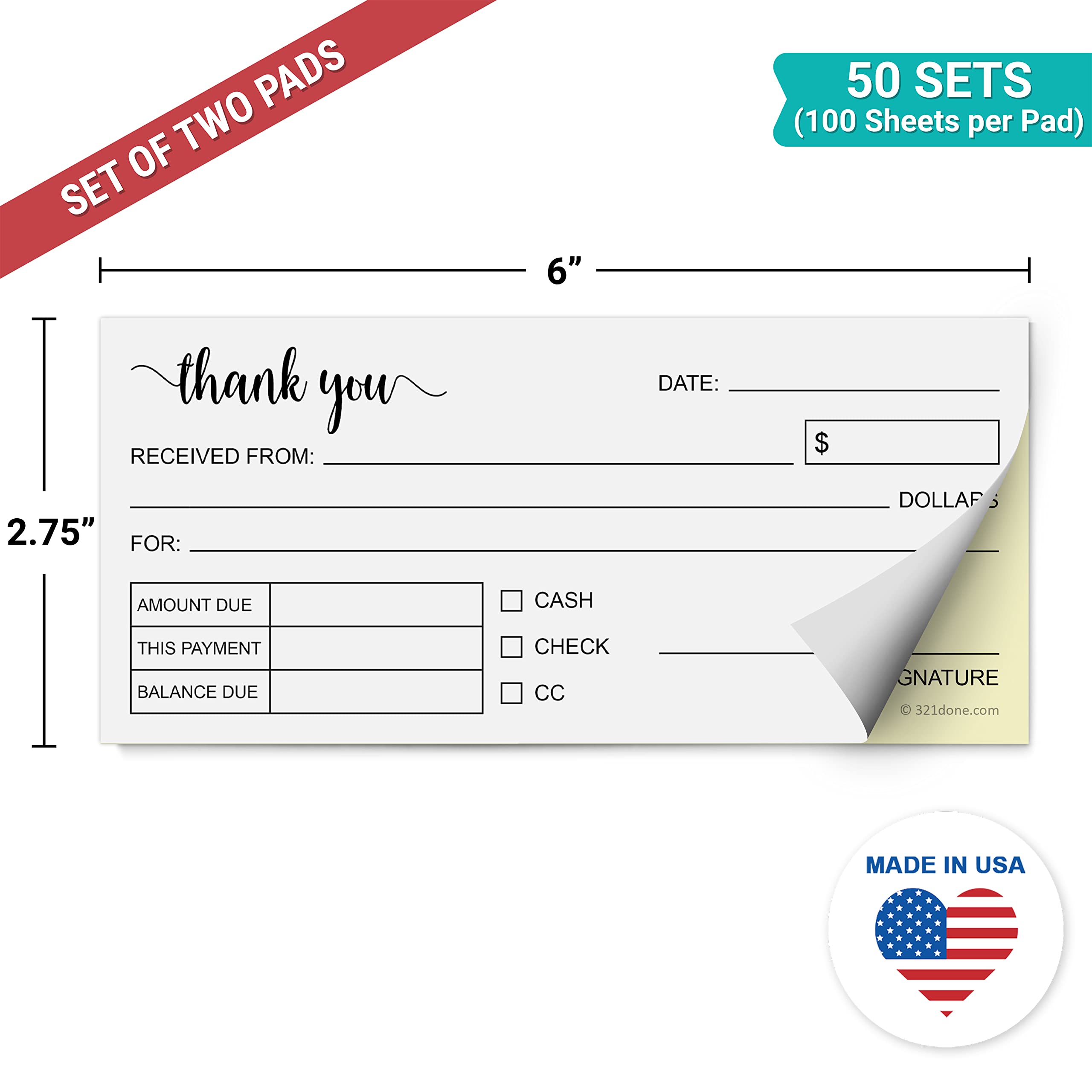 CONVENIENT HANDHELD DESIGN: 2 receipt books per pack. Each pad contains 50 checkbook size (2.75 x 6 in.) white/yellow sets on a sturdy chipboard backing for easy handheld writing