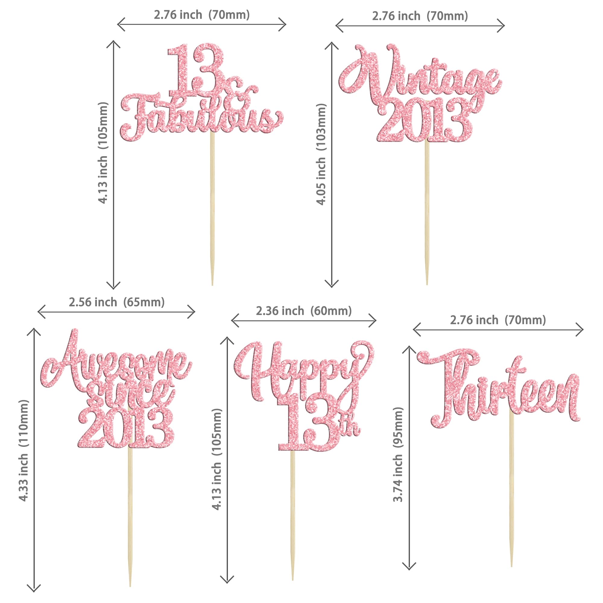 Material and Usage - Usage: They are perfect for vintage 2013 theme party, 13th birthday theme party, 13th wedding anniversary theme party,cheers to 13 years theme party cupcake decorations, which make the cupcake look tastier and more attractive. - Material: Made of paper material, solid, not easy to deform and fade and can reuse for many times; Please don't put them into oven for they are only decorative and not edible. Package and Size - Package: Pack of 30Pcs. Size: W 2.4"*H 3.9"/W 6*H 10cm(Include Stick). Comes with assembled, so you can insert into your cake directly, which make your cake more interesting. - If you want to return the item, please kindly contact us first, then we will deal with it until you are satisfied. Note 1.The cupcake topper picks have pointed end, please keep away from children when using. 2. These cupcake toppers are for decoration purposes only, not edible and do not place in oven or use for baking. 3. Due to the light and screen difference, the item's color may be slightly different from the pictures.