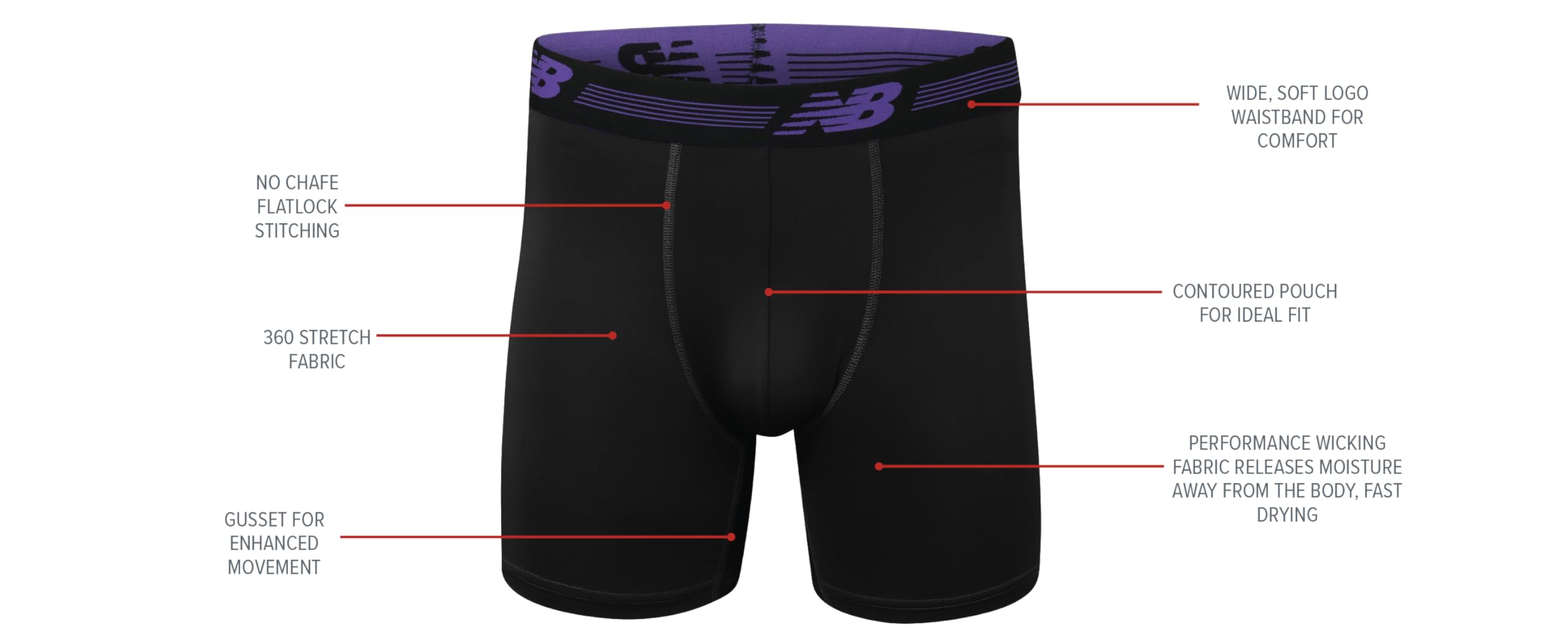 What's Included: Set of 3 or 4 New Balance Menβs 6β No Fly Boxer Briefs available in Small to X-Large, with extended sizes for big & tall.