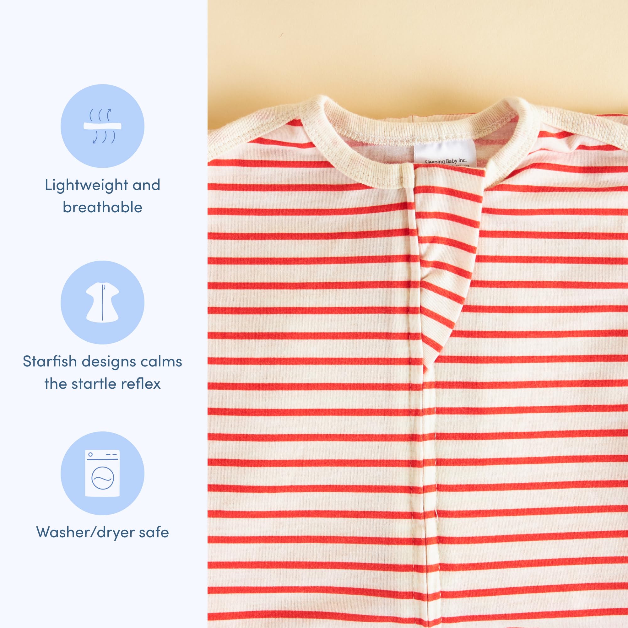 Encourages Longer Sleep: Suppressing the Moro startle reflex, our baby sleep suit helps transition your baby into arms-up sleeping, reducing interruptions and wake-ups for a longer, more restful sleep. The gentle pressure soothes your baby and keeps them from startling awake