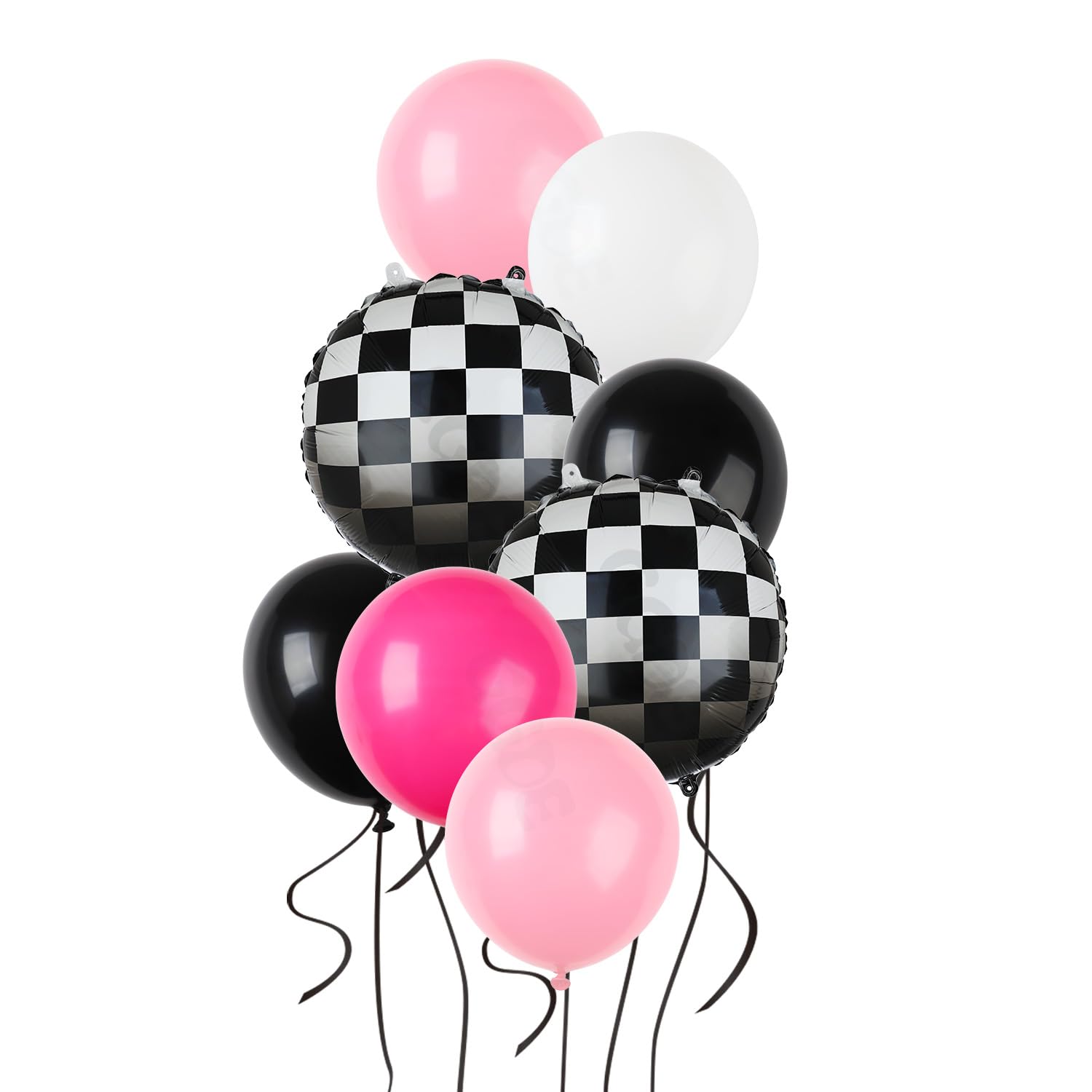 Race car design: These race car birthday party supplies feature 2 unique designs like pink colors and black checkered flags. The classic design of these hot pink race car plates for boys or girls adds a modern and artistic touch to your racing party decor.