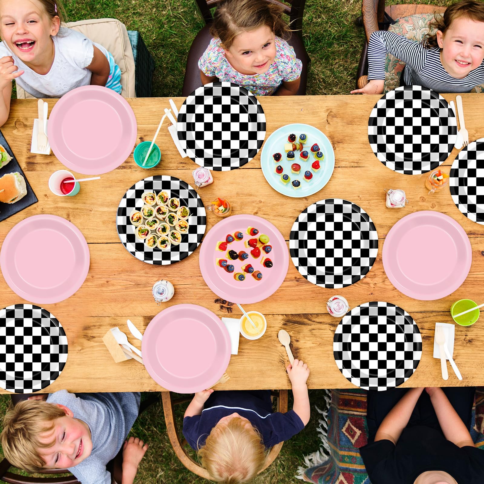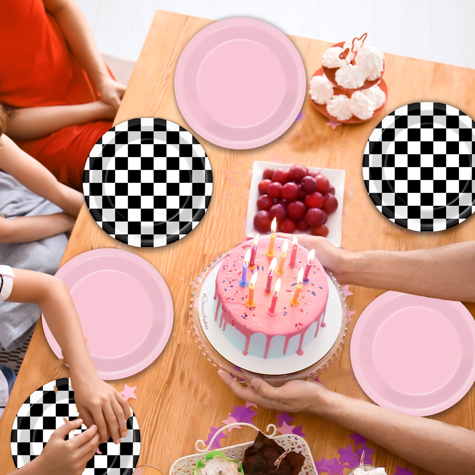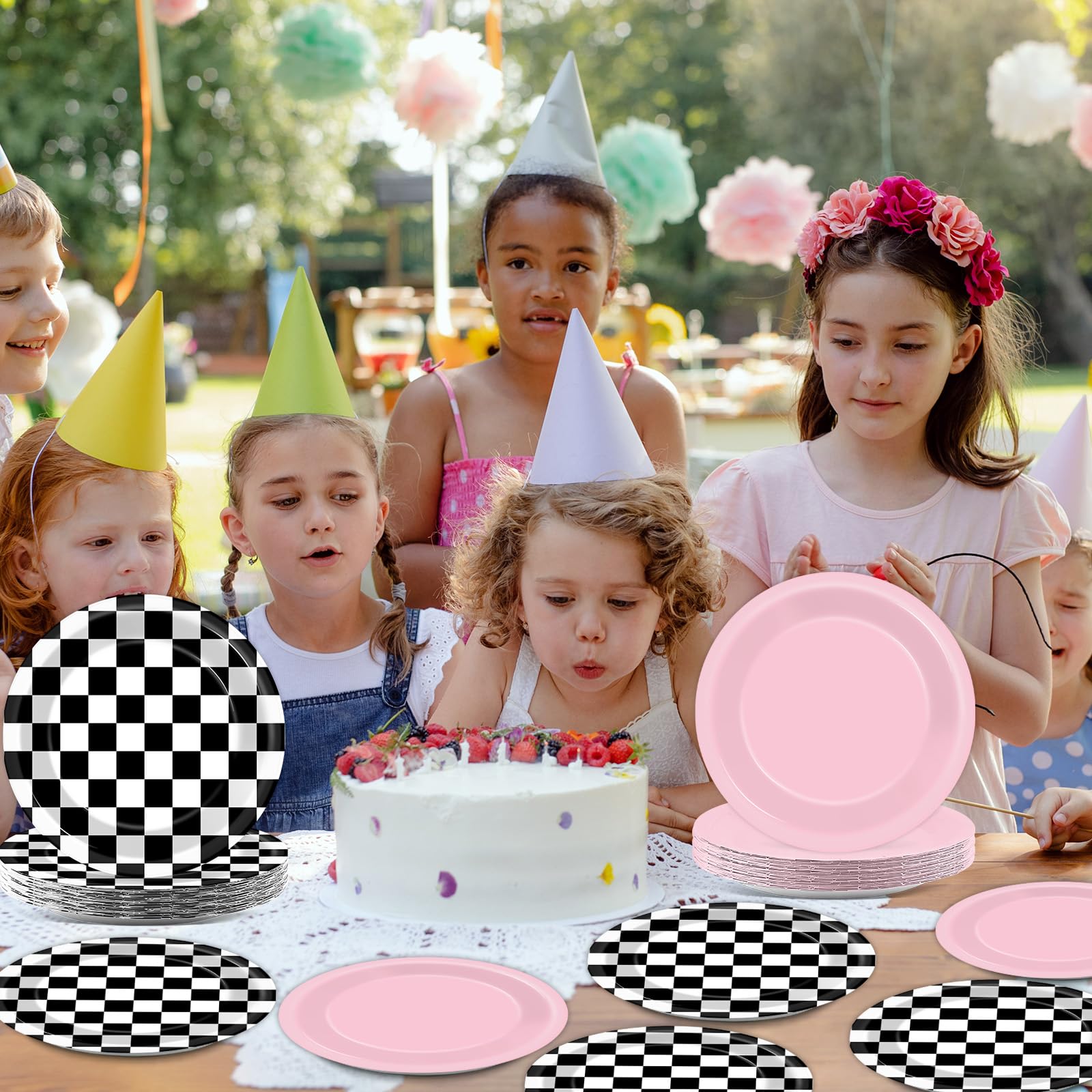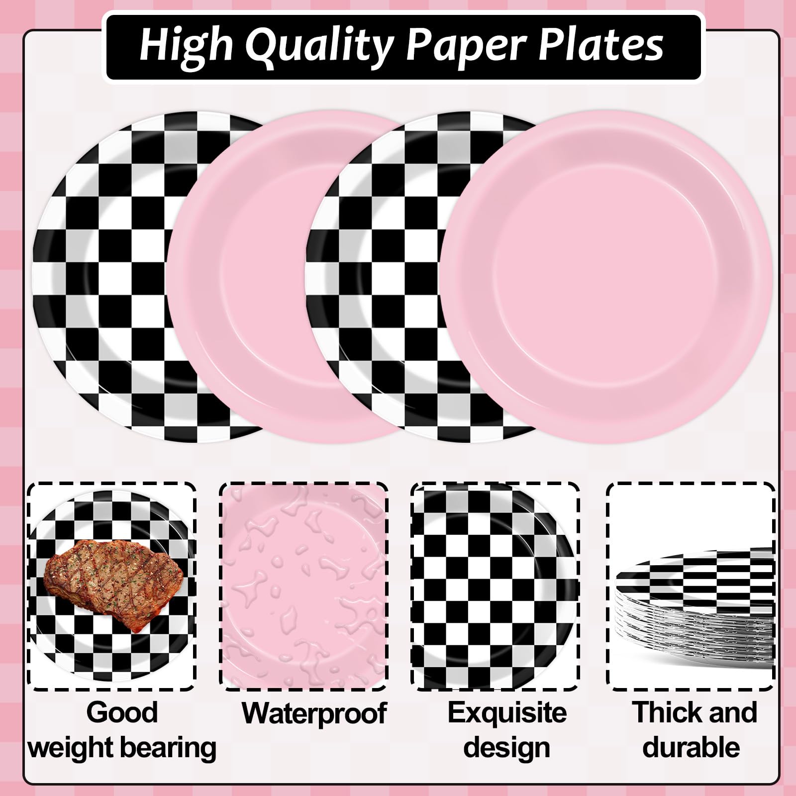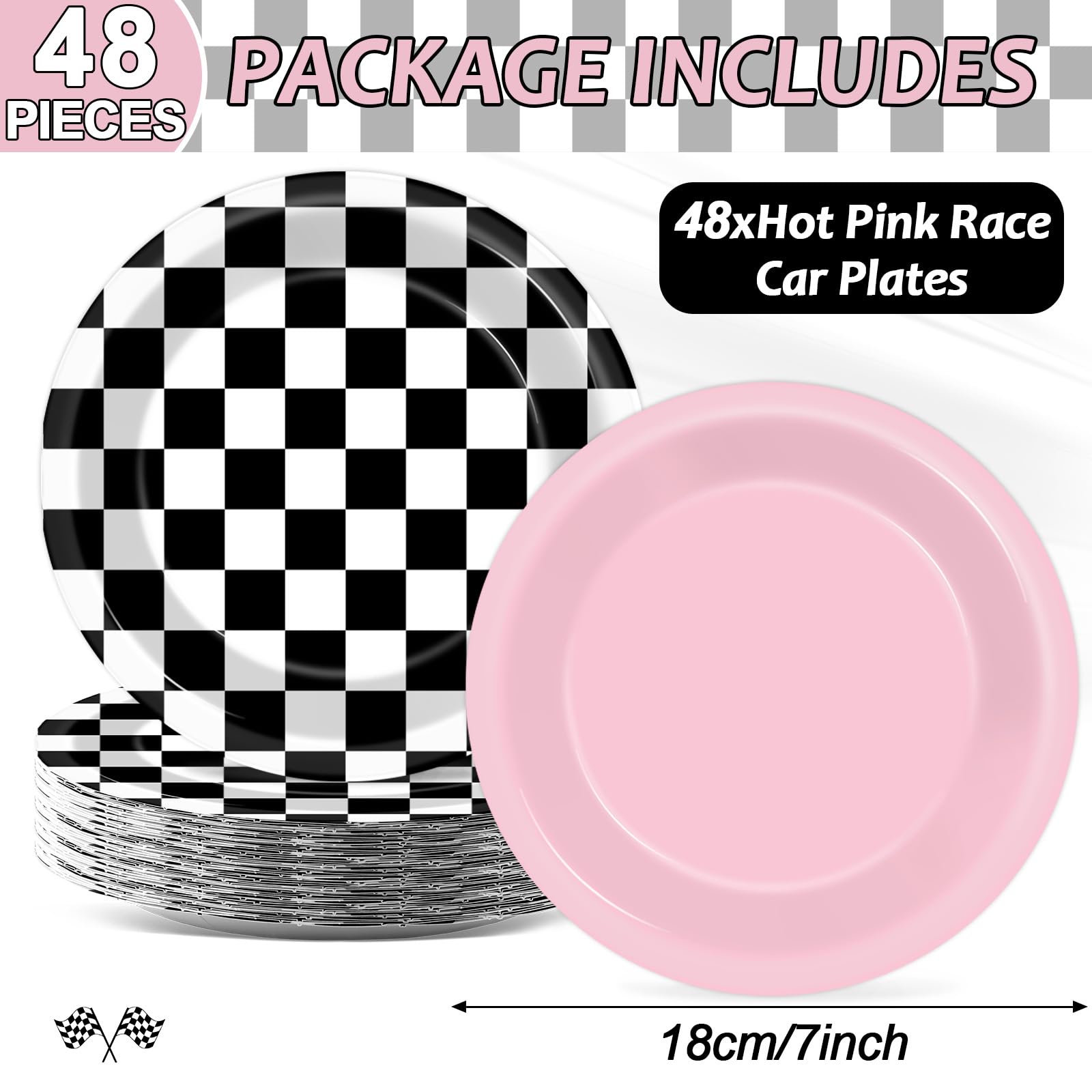 Premium quality: These pink checkered plates are designed to hold up a variety of foods without leaking, well-printed, and avoid fading embarrassment. This race car birthday party dinnerware is well-printed and non-fading to provide your boys or girls a birthday celebration atmosphere.