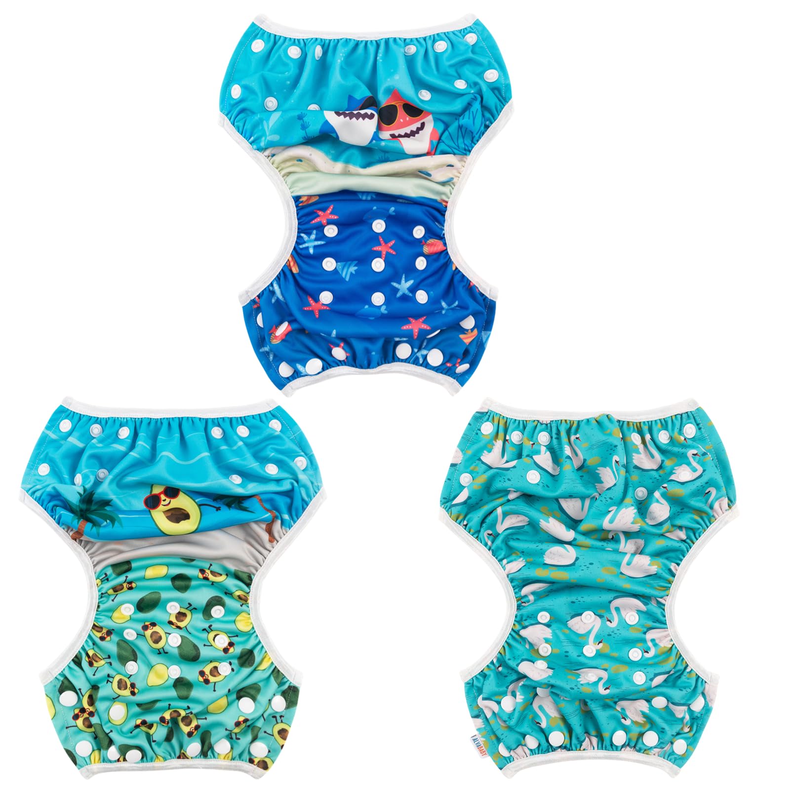 HIGH QUALITY, ADJUSTABLE, REUSABLE & WATERPROOF -ALVABABY swim diapers are made from waterproof 100% polyester PUL outer layer. Elastics waist and legs: Interior Polyester Elastics at the waist and leg openings with soft lycra bindings provides a secure, stretchy fit and easy on and off.