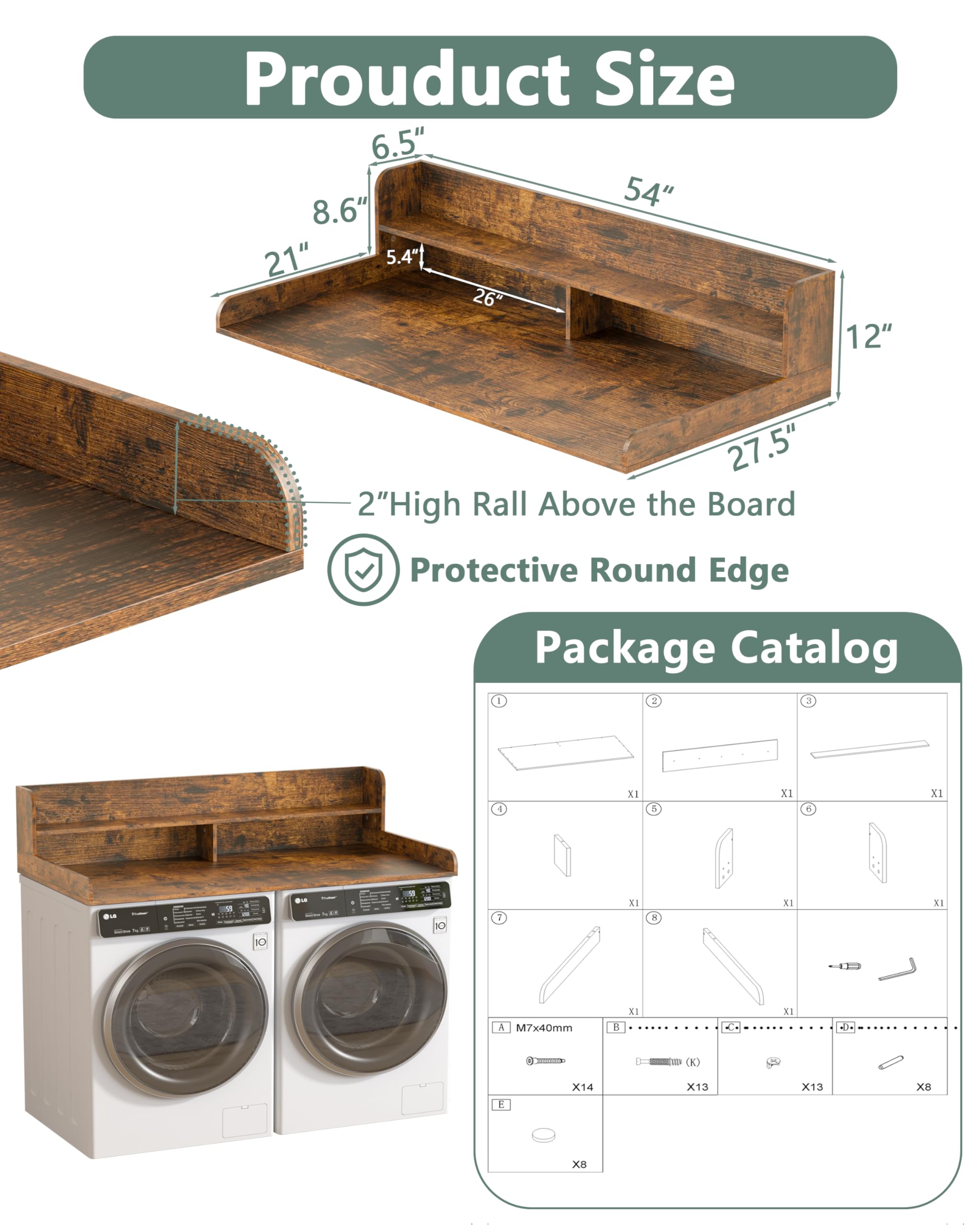 【Easy to Install】The products have been strictly tested before leaving the factory.The detailed installation guide for the laundry countertop included with the product explains the steps in clear steps. Even first-time users can easily complete each step by following the guide to ensure a smooth and error-free installation process. The product is equipped with 12 rubber stickers with anti-slip function to ensure that the washer dryer countertop is stably fixed on the laundry countertop.