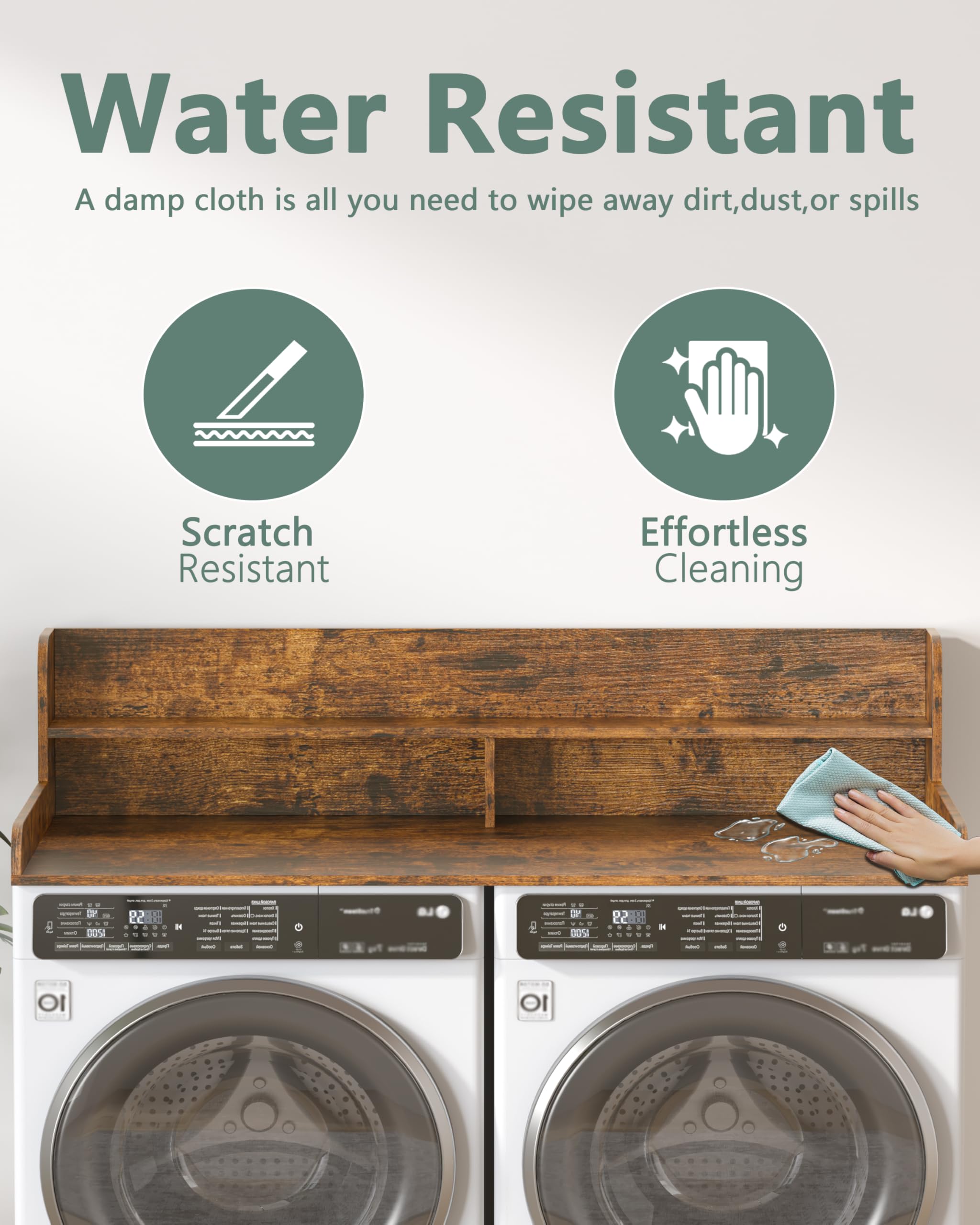 【Space Optimization】The Washer Dryer Countertop design fully considers the convenience of use and provides reasonable operation space and storage area. You can easily place washing supplies, clothes drying racks and other items, reduce bending and moving when taking them, and improve the efficiency of washing and drying.