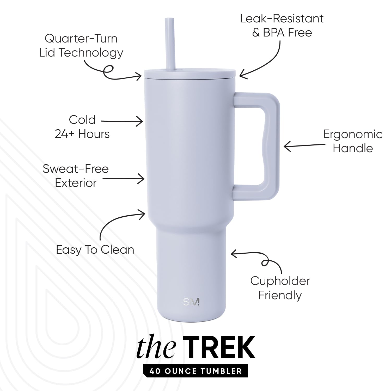 The Simple Modern Trek Tumbler is double walled and vacuum insulated to keep your drink hot or cold for hours. The cup is outfitted with an ergonomic handle, that is aesthetically designed for comfort. It comes with a straw lid and two straws so you can enjoy your favorite beverage on the go. The straw lid is four-way threaded to allow four different straw placements for your drinking hand preference. The Trek is made from 18/8 stainless steel and fits standard cupholders, and with a variety of color options, you can get an Emotional Support Water Bottle for whatever outfit or activity the day entails.