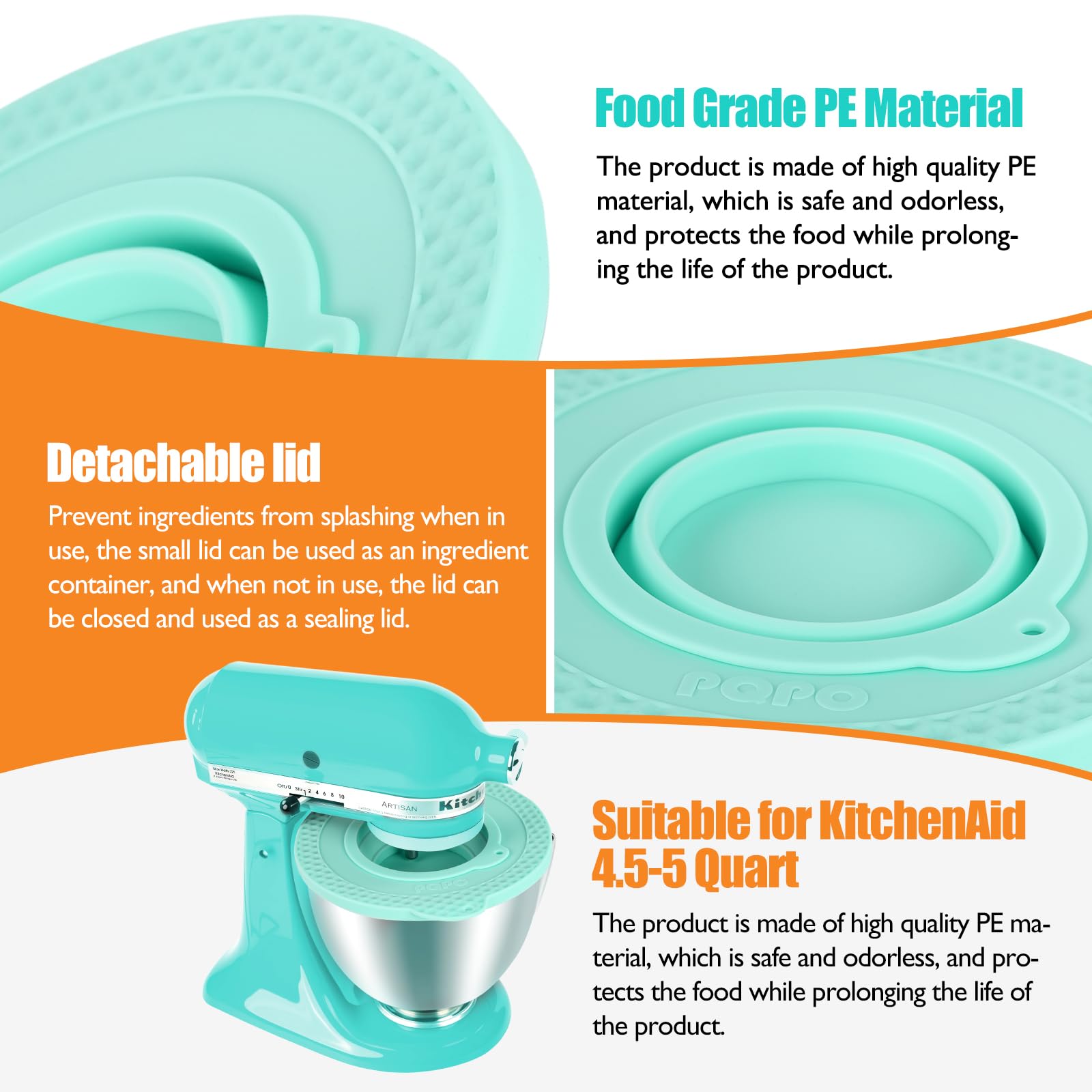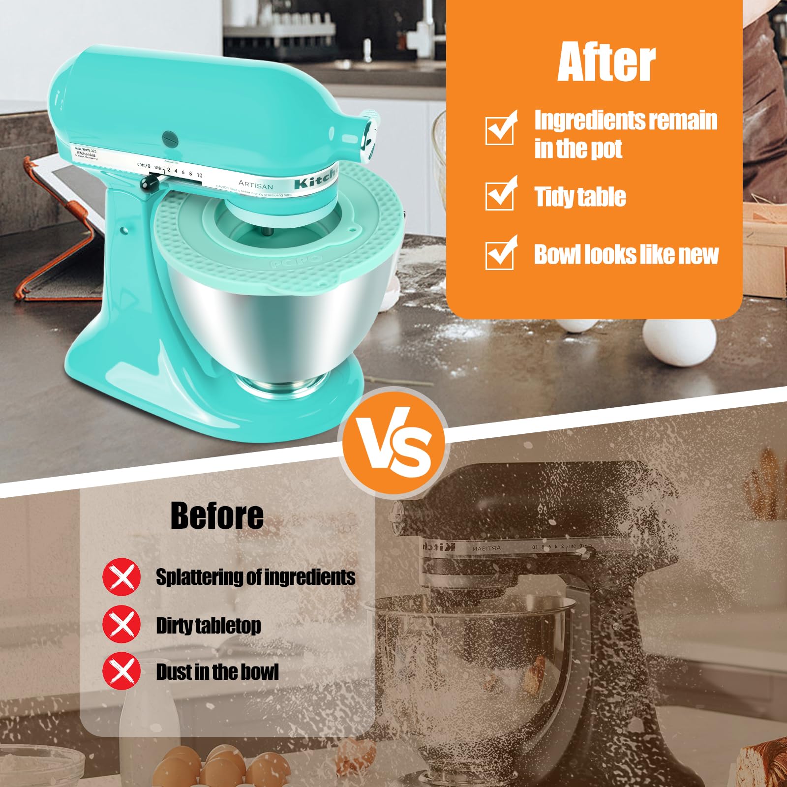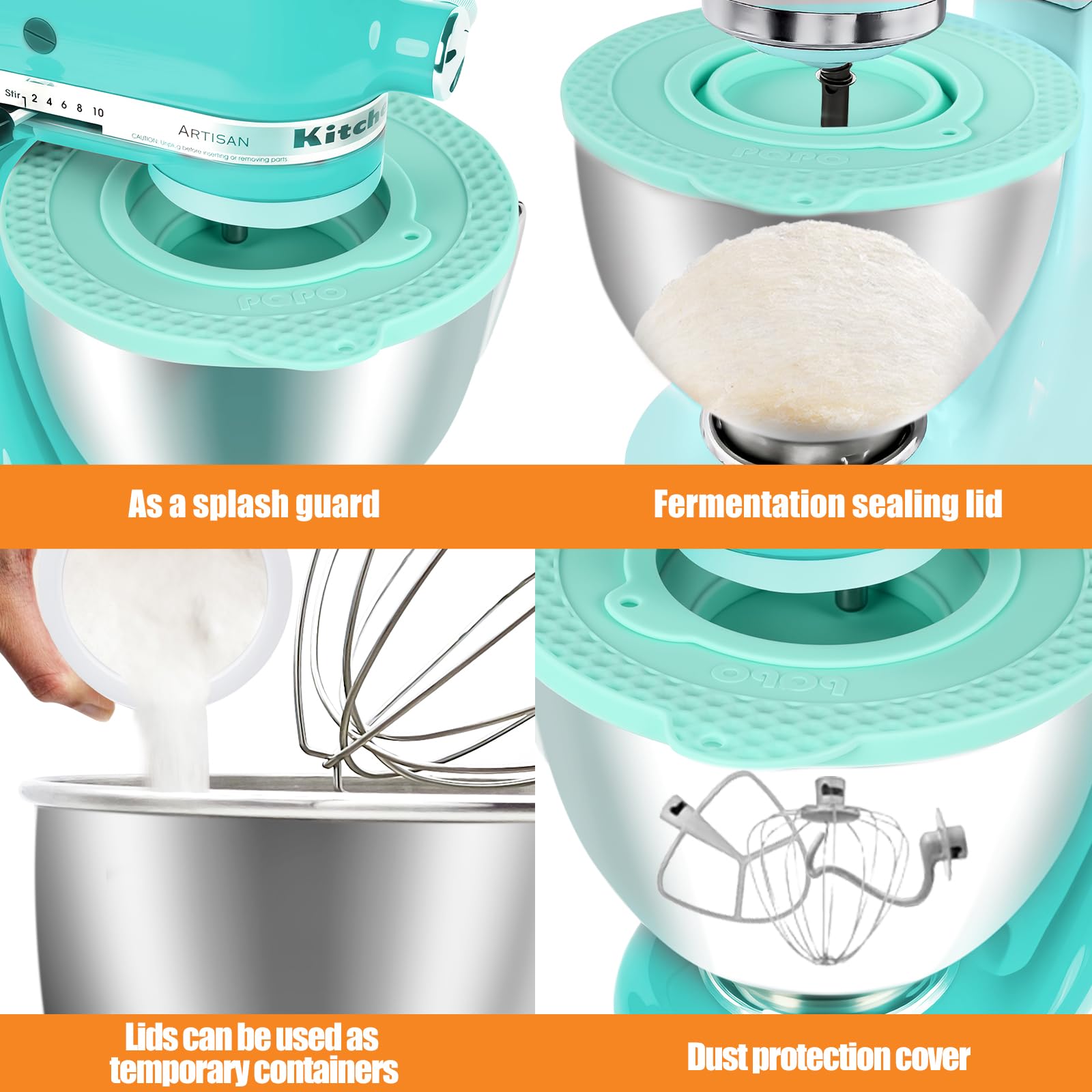 PQPO Mixer Bowl Covers - Designed for use with the 4.5-5 quart Tilt-Head bowl-lift stand mixer, These bowl lids effectively keep ingredients inside the bowl, preventing light ingredients like flour from flying out and keeping kitchen countertops clean.