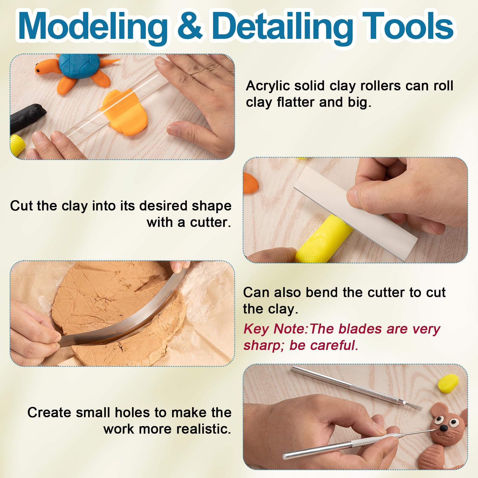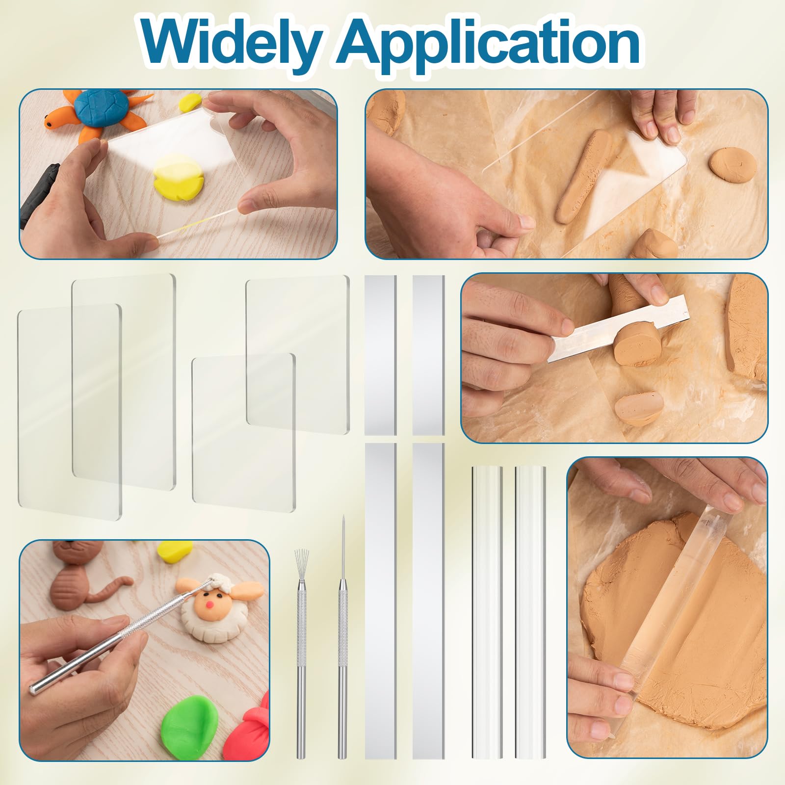 YOU WILL RECEIVE: The package includes 4 clear acrylic rectangular boards, 2 clear acrylic clay presses, 4 ceramic cutting tools, 1 metal texture tool and 1 needle-tip detail tool. Meet your needs for creating beautiful ceramic artworks