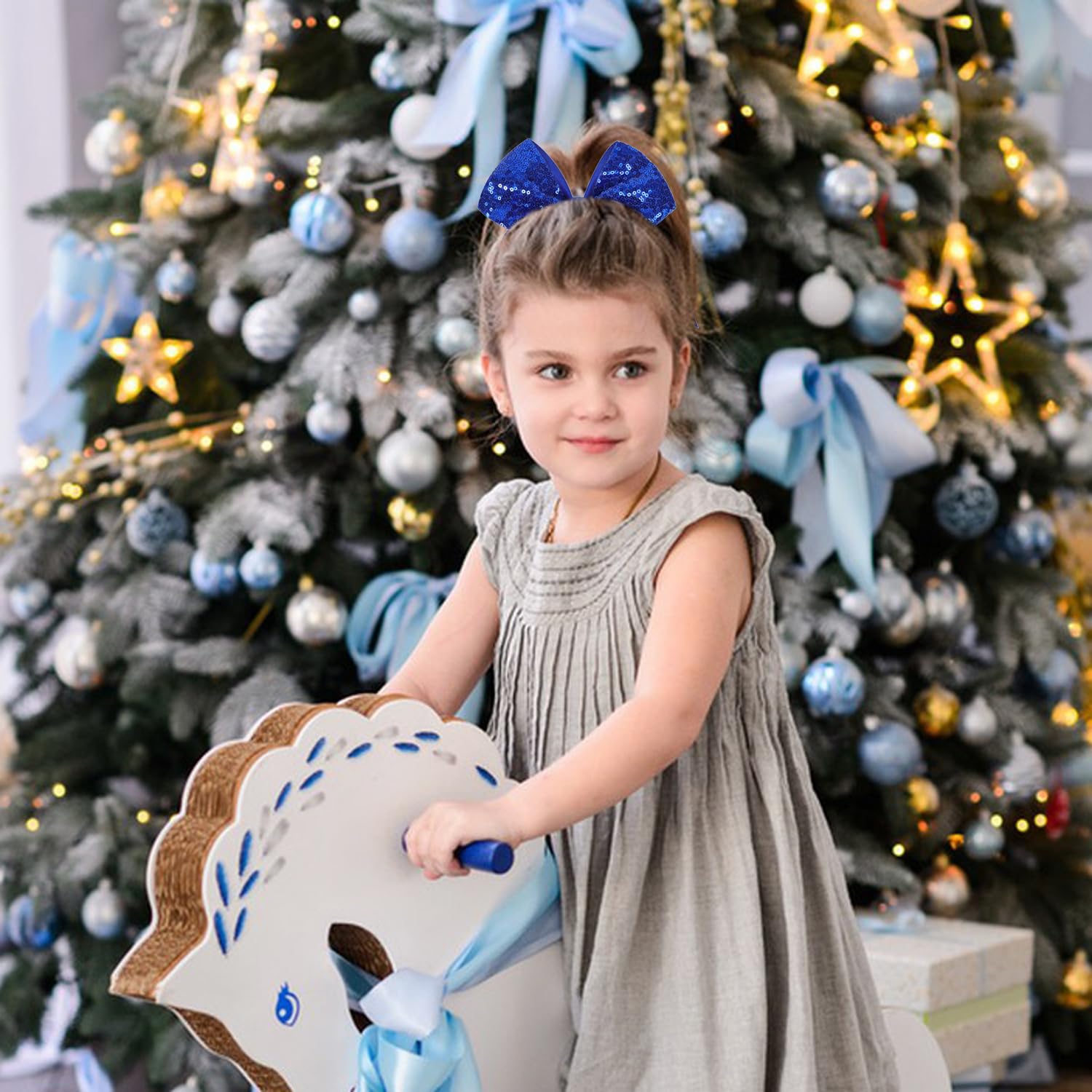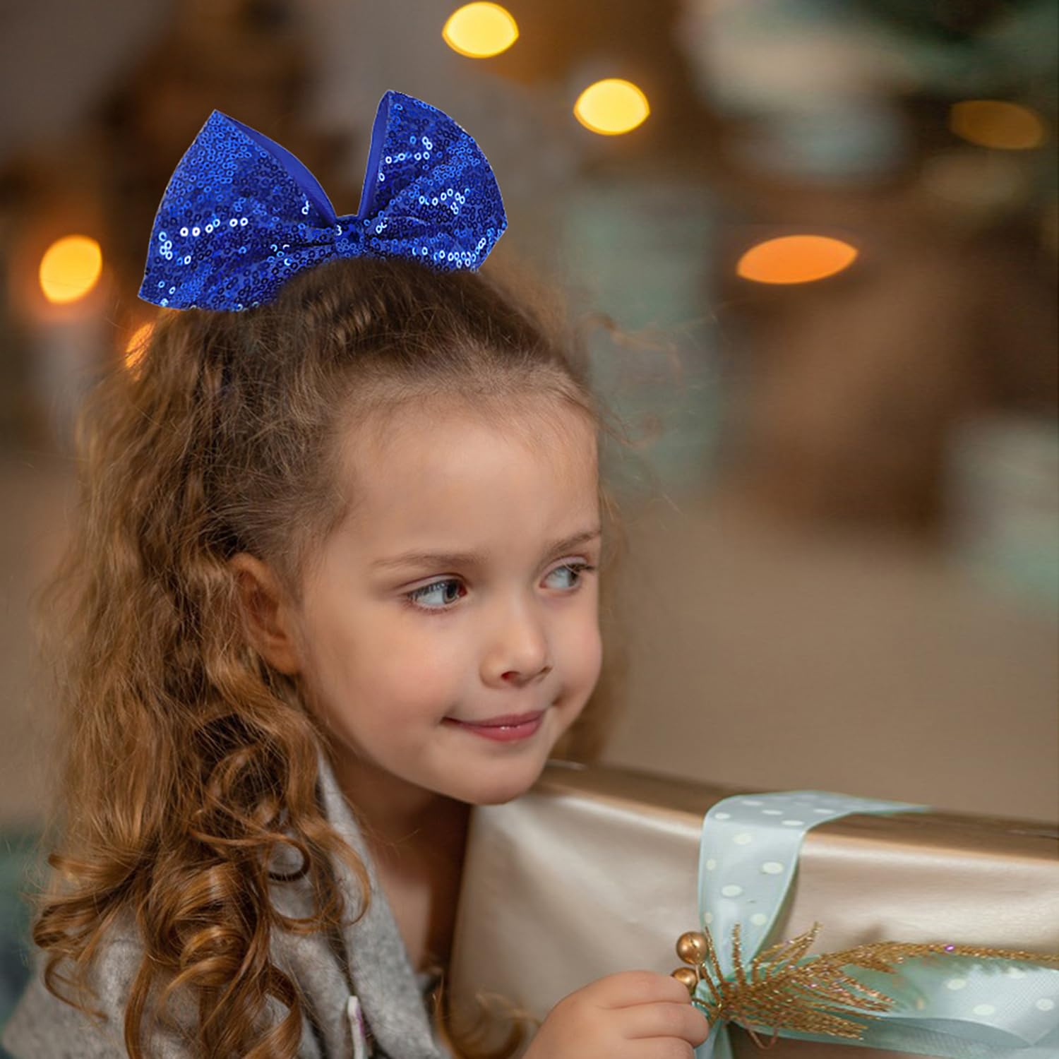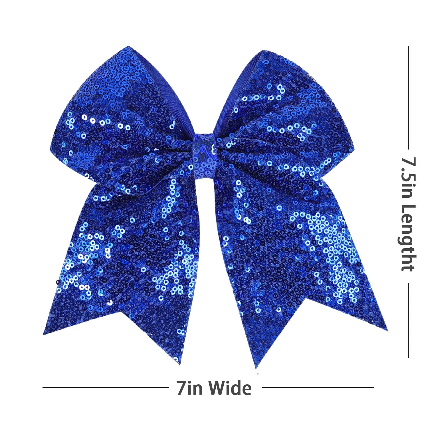 2. Material and Size: These bows are meticulously crafted from high-quality ribbon and sequins, ensuring both comfort and style. Measuring 7.5 inches in length and 7 inches in width, they're suitable for all ages, making them the perfect hair accessory for women, children, and kids' pigtail ponytails.