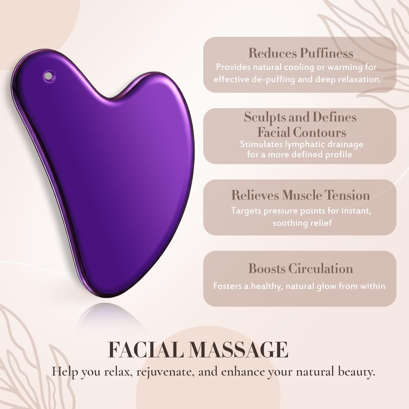 Stainless Steel & Gentle Massage: Crafted from quality stainless steel with a mirror-polished finish, this GUA SHA tool is smooth, hygienic, and a breeze to clean;It glides effortlessly over the skin for a comfortable, relaxing massage;Use with facial oil or serum and apply gentle pressure to avoid skin irritation or scratches