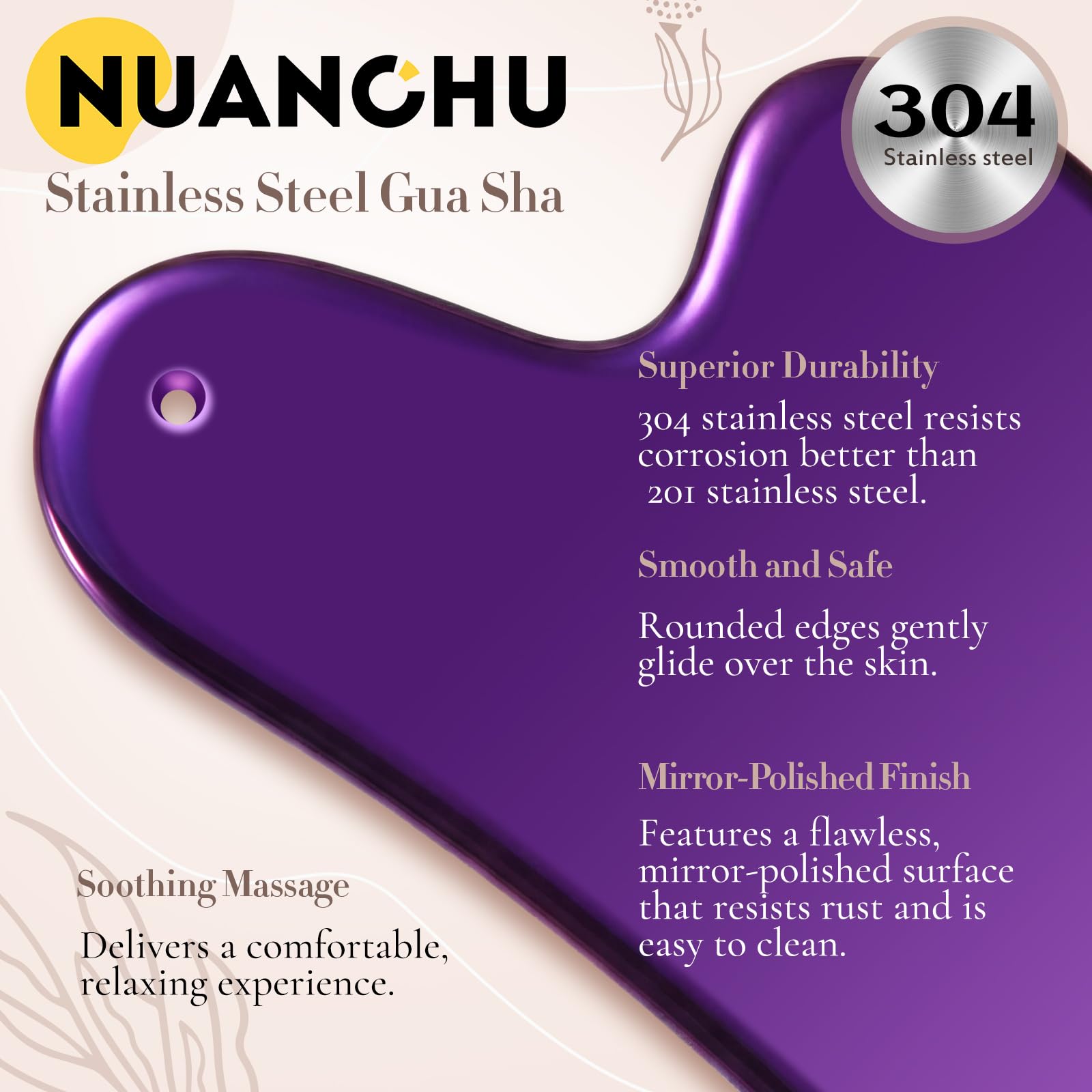 Sturdy and Durable: stainless steel gua sha board is tougher than stone, jade, and buffalo horn tools; No need to worry about breakage; Small hole on top for technical reasons doesn't affect use; It's reliable for all your massage needs, a long-lasting gift for self-care