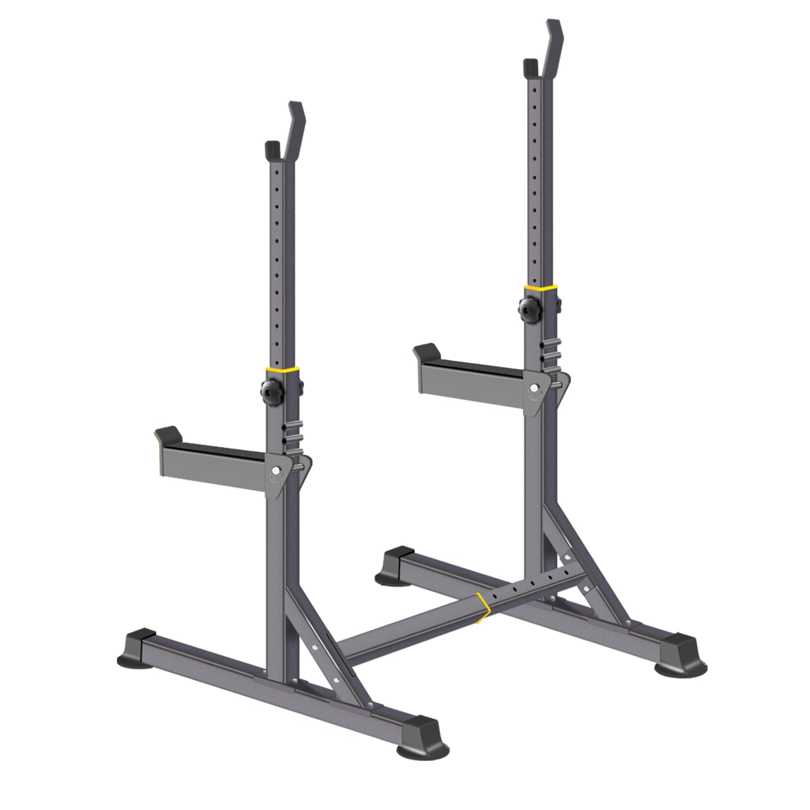 [4 POSITIONS ADJUSTABLE BUMPER] Squat Rack with adjustable bumper,easy to place the barbell when you need a short break or switch movements.Bumper: 24βto 27.5β. 4 Positions.