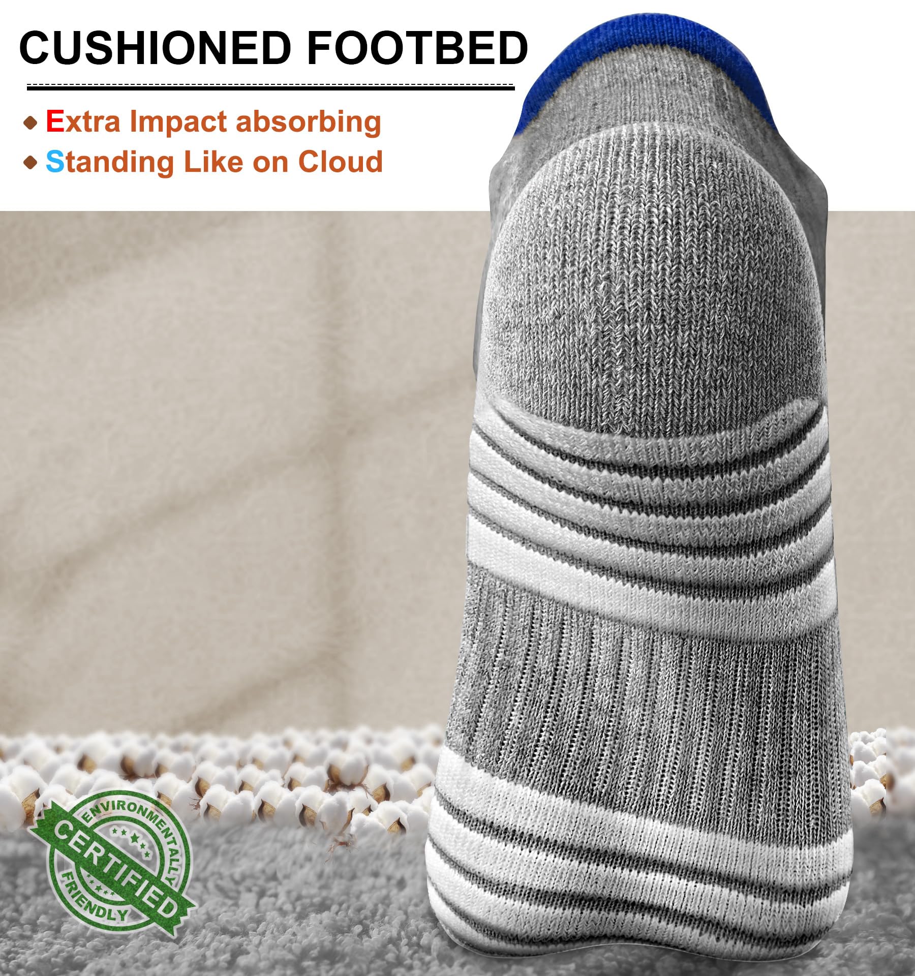 CUSHIONED FOOTBED--Experience superior comfort and support with our socks; The full-circle terry cushioning provides excellent bounce and shock absorption,making every step a delight;