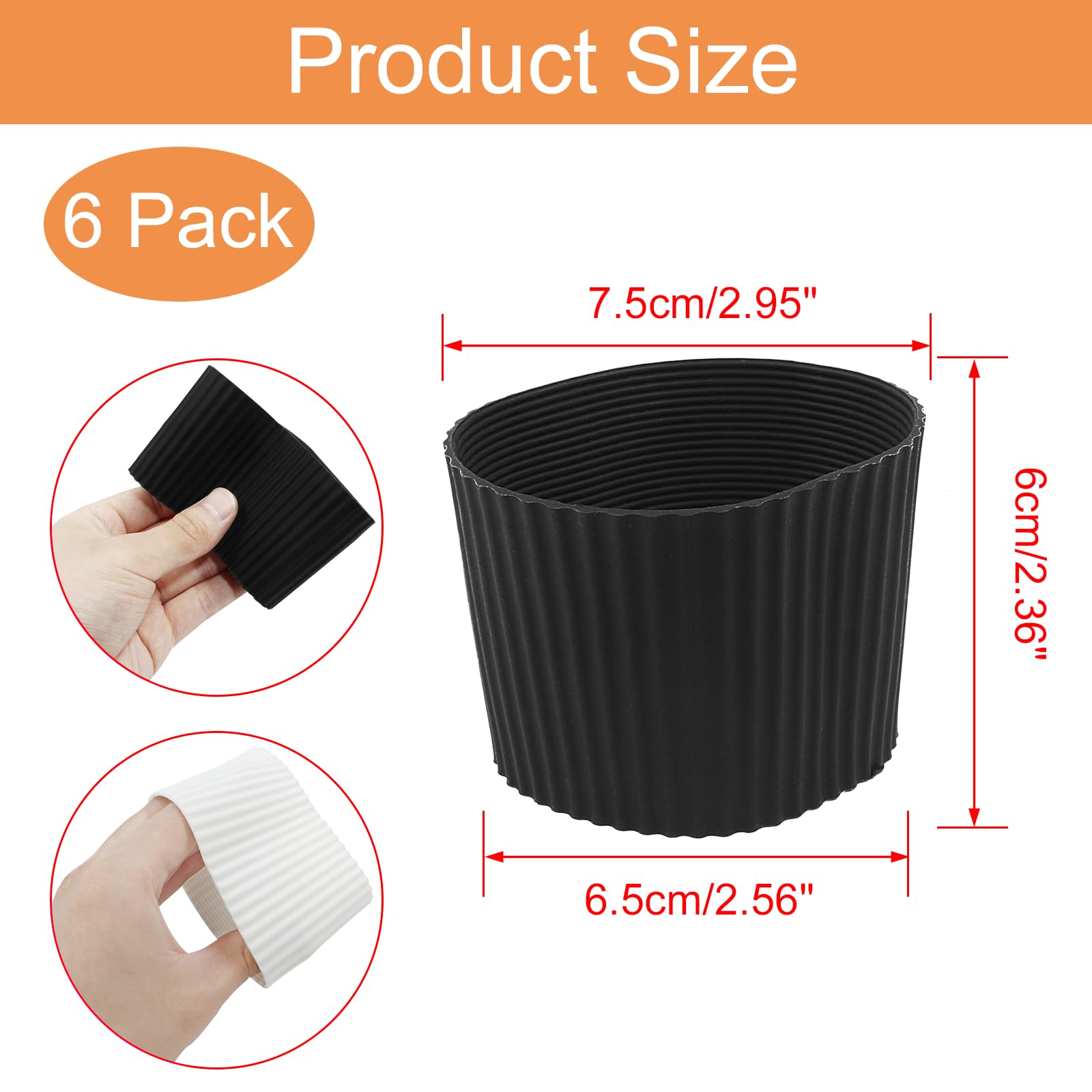 Specification Material: Silica Gel Color: Black and White Upper diameter: 7.5cm/2.95in Lower diameter: 6.5cm/2.56in Height: 6cm/2.36in Package quantity: 6 pcs reusable heat resistant cup sleeves
