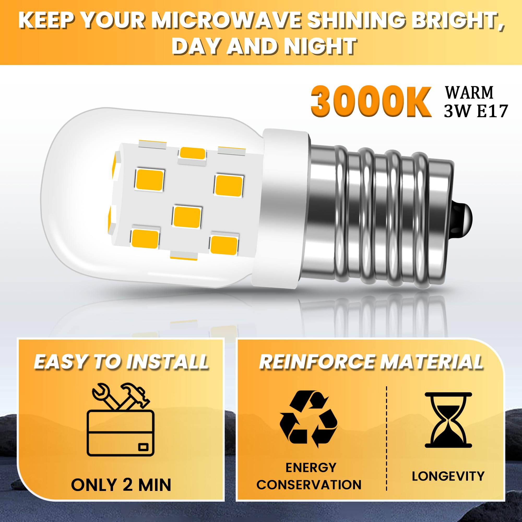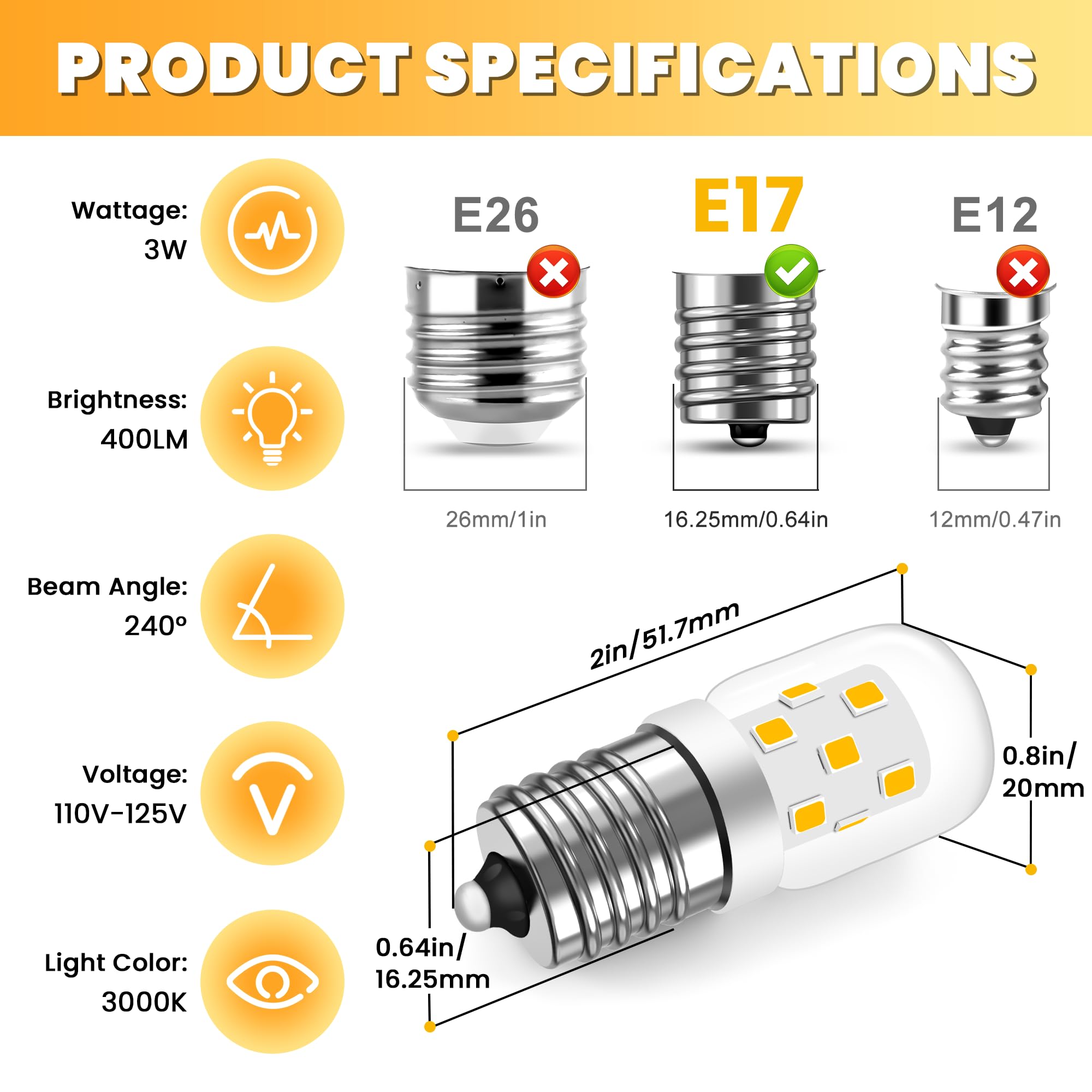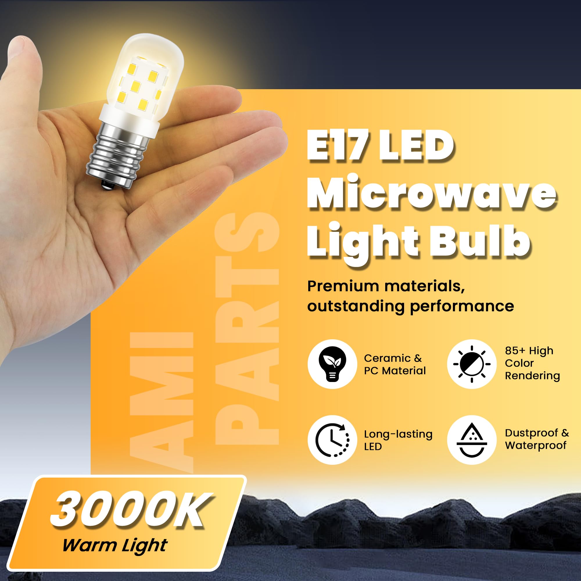 Wide Compatibility This E17 intermediate base bulb is designed to fit a variety of appliances, including microwaves, refrigerators, range hoods, stove hoods, and sewing machines. It replaces models such as ge microwave light bulb, and other part numbers like 8206232, 1890433, AP4512653, WB36X10003, and WB25X10030. An ideal led appliance bulb range hood solution