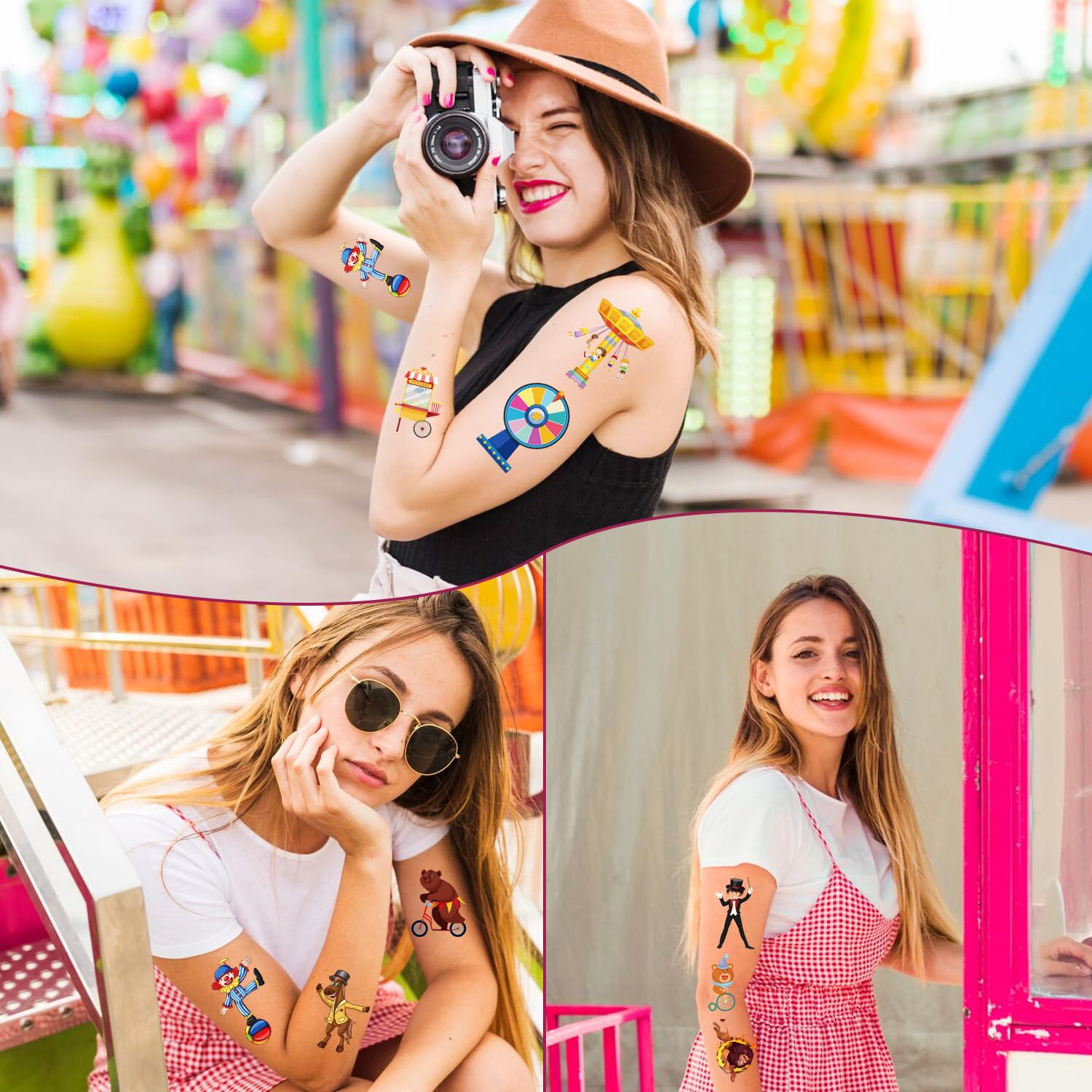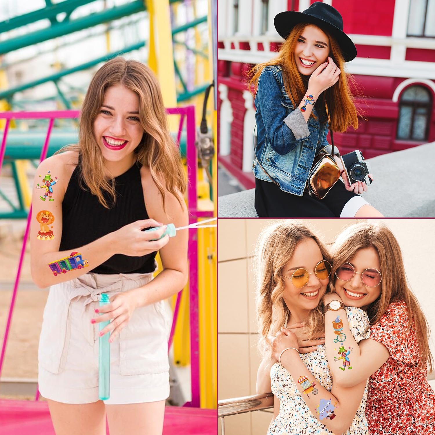 Reliable Material: Our carnival circus themed tattoo stickers are made of eco-friendly ink, high quality water transfer paper material and eco-friendly glue. The pattern color is bright and long-lasting, keeps the pattern clear in any environment and easy to clean.