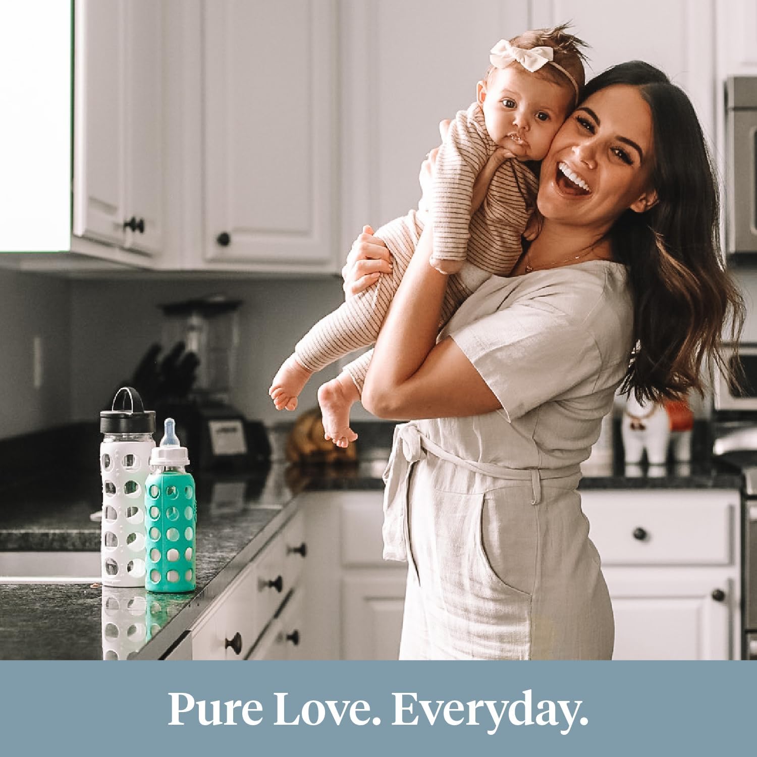 Our baby bottles are made of the highest quality, thermal shock resistant borosilicate glass. This allows our bottles to transition safely from freezer to boiling water. The silicone sleeves provide a good gripping surface for little hands and help protect against the occasional drop. Includes 9-ounce (250 ml) bottle with Stage 2 (3-6 mos) nipple. Care and use - Before first use, place in dishwasher or in boiling water for 3 minutes. This is to ensure hygiene. Immediately after use, disassemble individual top components (e.g. nipple from top or valve from cap). All parts are dishwasher safe (top rack only). To wash by hand: wash separately in hot, soapy water and rinse thoroughly. Bottle and sleeve may be placed in the dishwasher or boiled without removal of the sleeve. If you wish to remove the sleeve, it comes off best in warm, soapy water. To allow venting and prevent nipple/valve collapse, do not over-tighten screw top