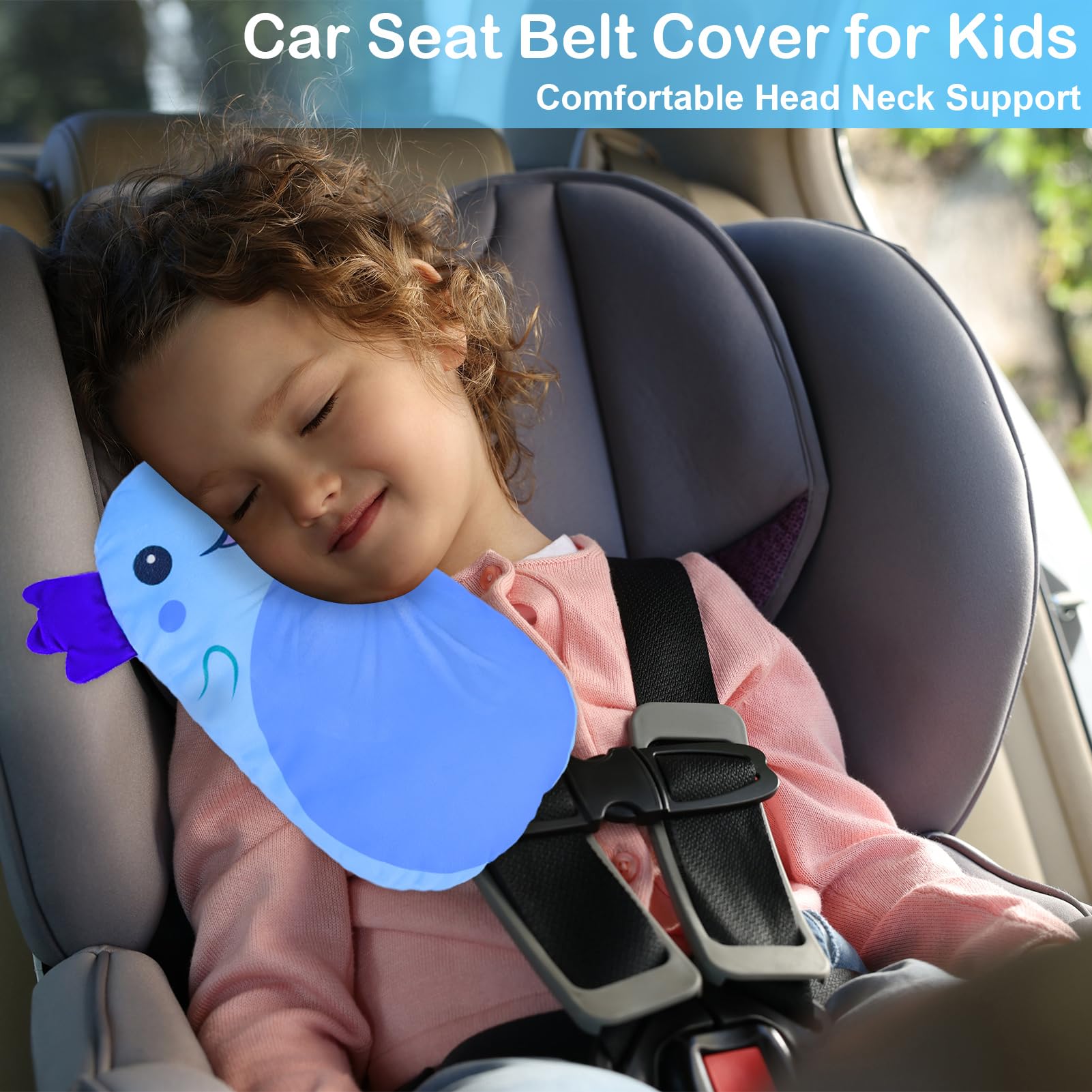 Cute Design: The seat belt cover pads for kids are designed with adorable dinosaur/unicorn/cat and other shapes,with bright colors, popular with toddlers children girls boys; This kids seat belt pillow will make the car travel comfortable and enjoyable
