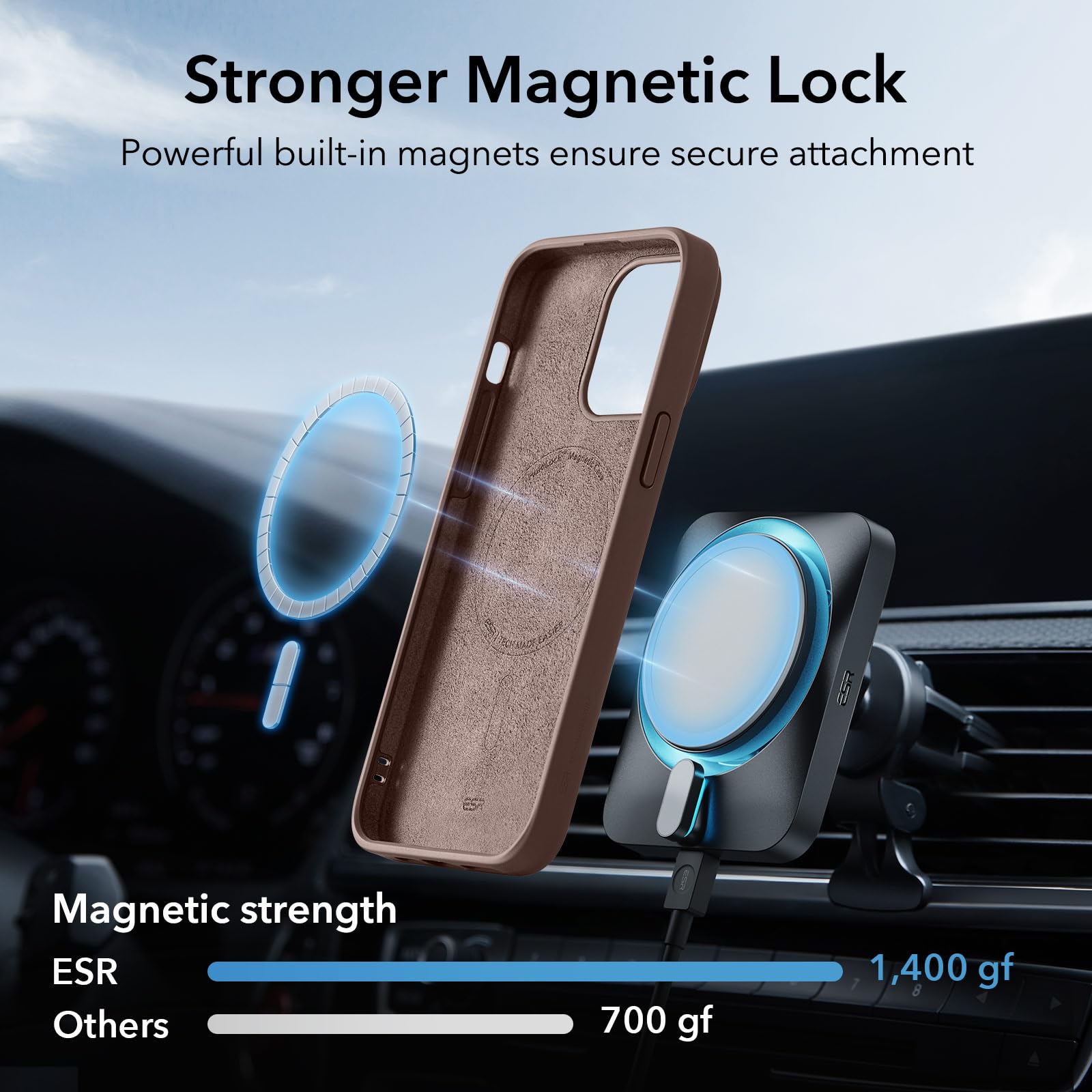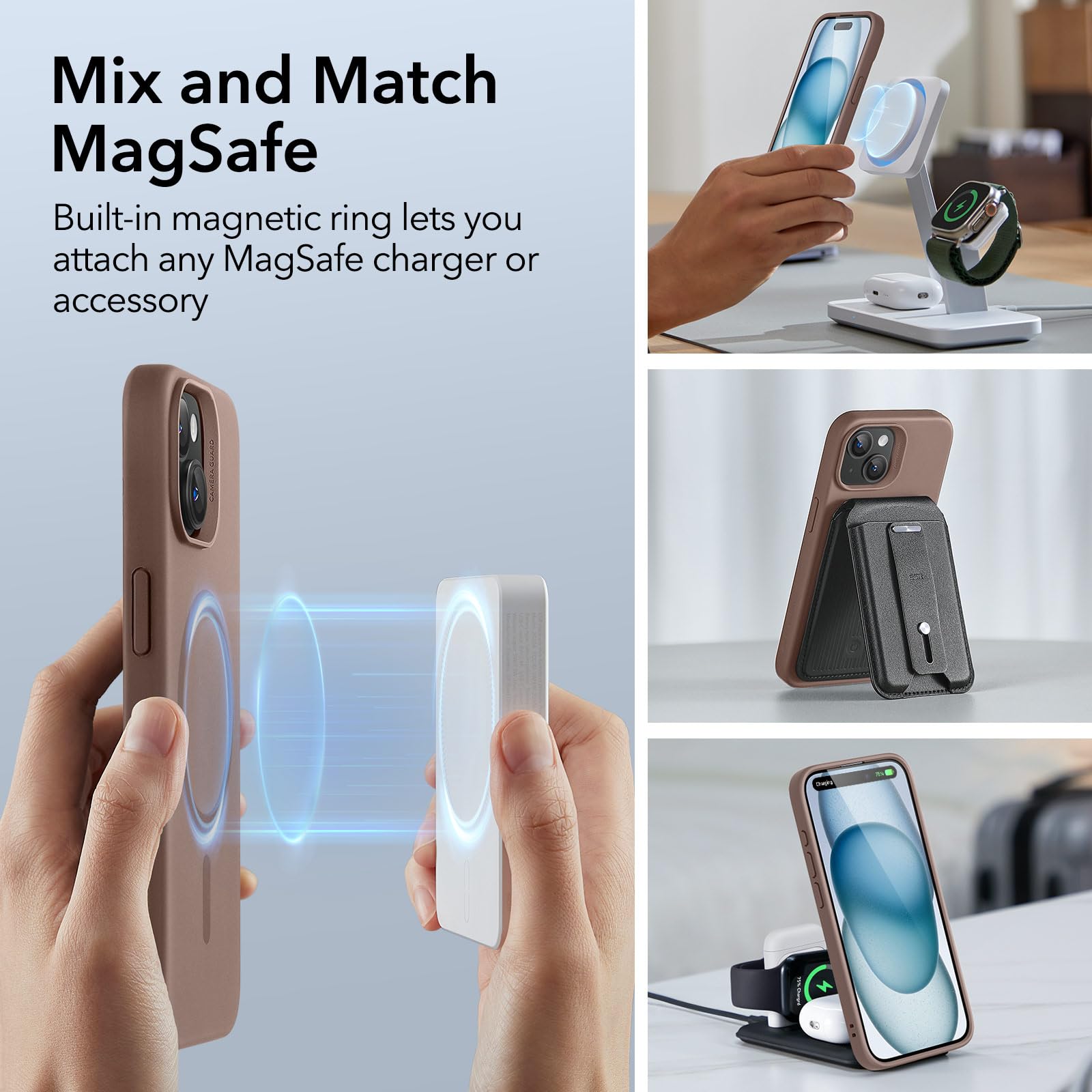 Ready for MagSafe: powerful built-in magnets with 1,200 g of holding force ensure a secure lock with all MagSafe-style accessories; only for iPhone 15