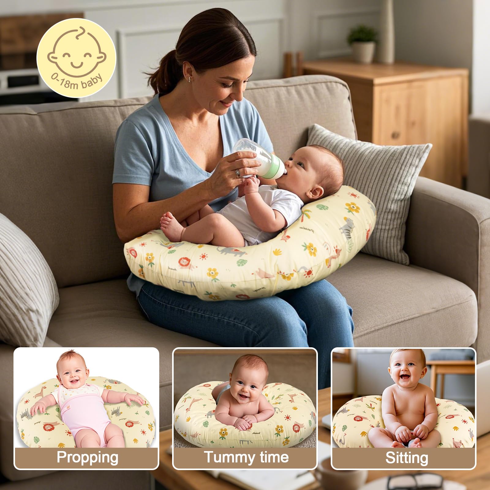 Nursery Must-have for Baby- Baby nursing pillow can provide proper support and stability for your baby at feeding (0+ months), propping (3+ months), tummy time (6+ months), and sitting (9+ months). Several nursing pillows in the baby’s crawl area keep them safe from crawling to standing