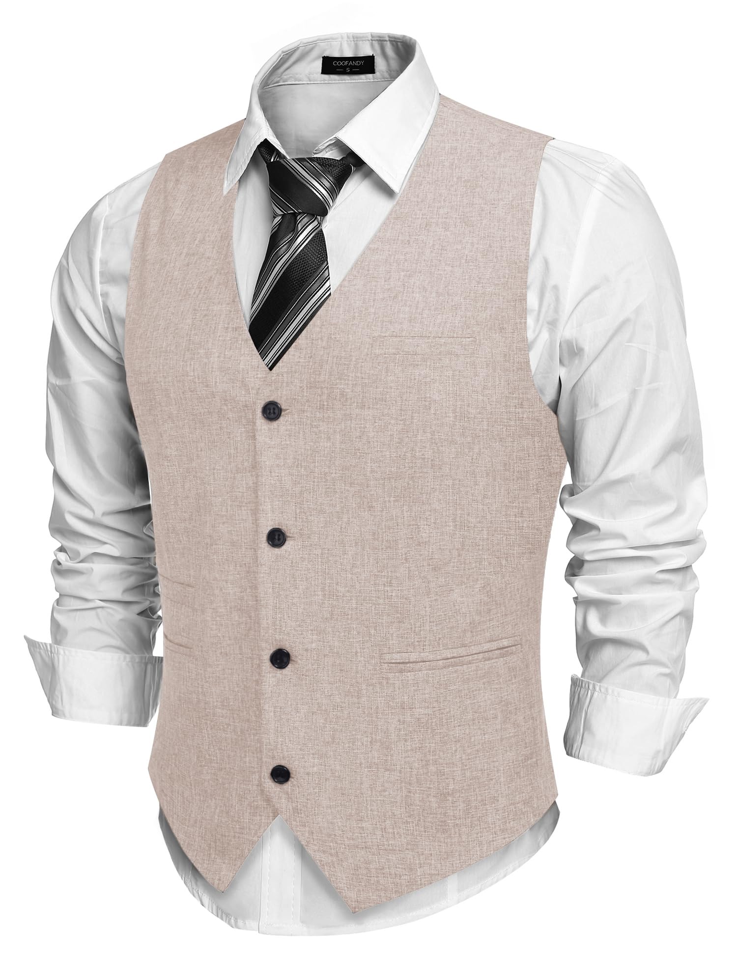 Business Modern Vest Design--- Leisure simply style suit vest beautifully cut, excellent craftmanship, designed with 2 front pockets,1 chest pocket, 6 button front closure, adjustable back strap offers you more accurate fit.