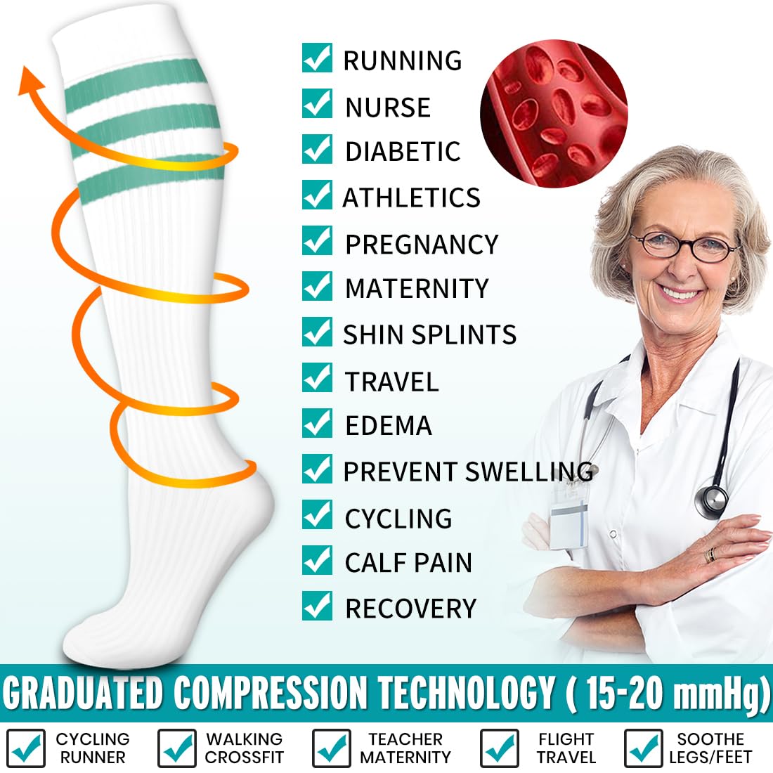 UPGRADE YOUR COMPRESSION SOCKS DRAWER! - With all the tasks of work and family (and of life itself!) we may forget to pay attention to and maintain the health of our legs. Our compression socks are designed to help increase circulation, improve leg and foot comfort, and reduce soreness and swelling, increase energy, All day comfort.Great for long periods of sitting or standing, endurance sports, flying and travel, post-workout recovery, pregnancy, and spider & varicose veins.