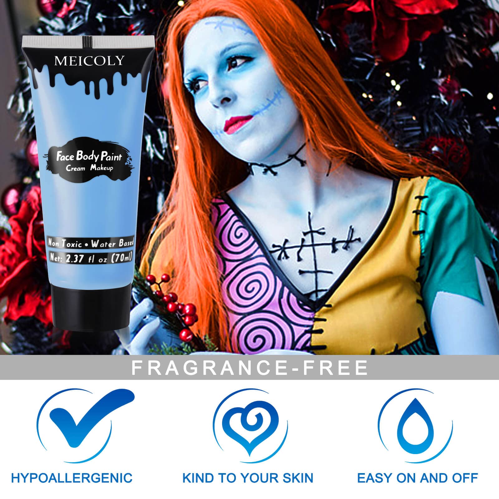 βSafe Ingredient: MEICOLY face body paint is infused with gentle and safe formula,it is Paraben Free and Gluten Free,not itch,crack or irritate the skin,safe for kids and adults to do face painting.Not tested on animals,the ingredient is vegan and cruelty-free,gentle face paint for sensitive skin.Notice:As with all cosmetics we advise that a small skin patch test is done before applying as everyone's skin is different