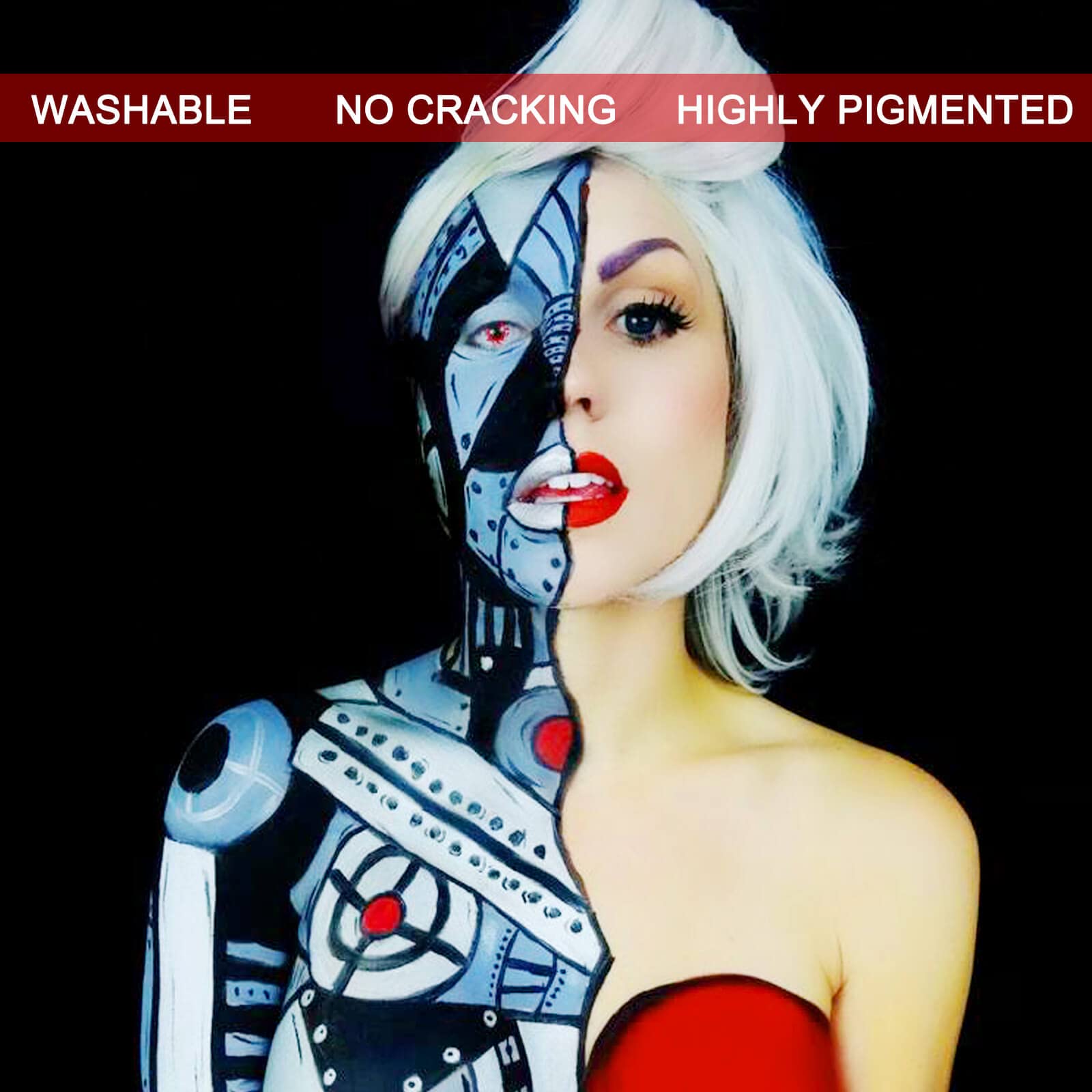 βSuit for Many Occasion--- MEICOLY face body paint can be used for face and body. Fit for Halloween Costume theme,fancy ball, parties, club,photoshoot,superhero designs,day of the dead makeup or other more SFX cosplay makeup